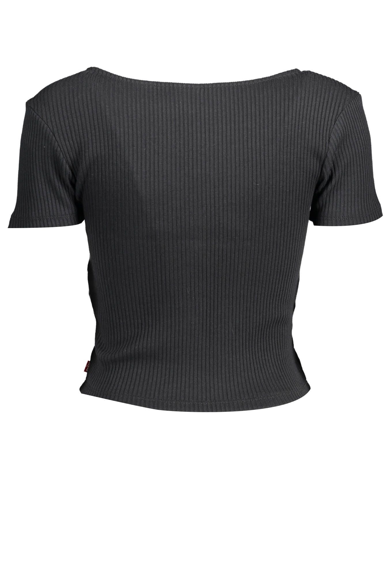 Upgrade your casual wear with the timeless charm of this chic black tee, a wardrobe essential that effortlessly blends style with comfort. This short sleeve top from Levi’s features an elegant wide neckline and signature logo, adorned with tasteful button detailing for that extra touch of sophistication.