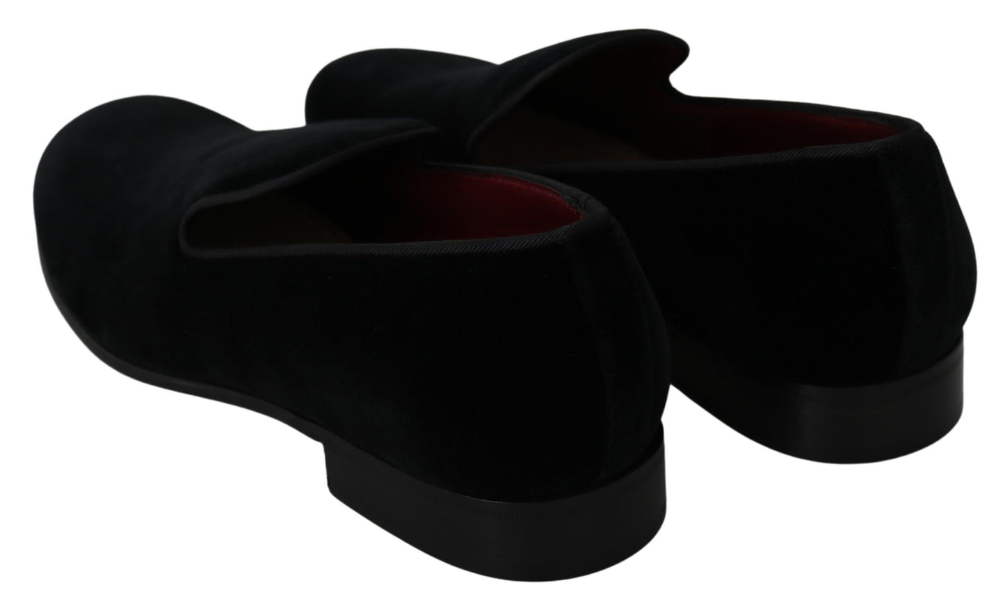 Step into luxury and elegance with these opulent Black Velvet Loafers by Dolce & Gabbana. Perfect for any sophisticated ensemble, these shoes boast both standout style and impeccable craftsmanship. Crafted in Italy, these loafers are a testament to the high-end quality and exclusive design that Dolce & Gabbana is renowned for. Complete with bordeaux leather soles and subtle logo details, you’re assured a plush step in these 100% cotton velvet beauties.