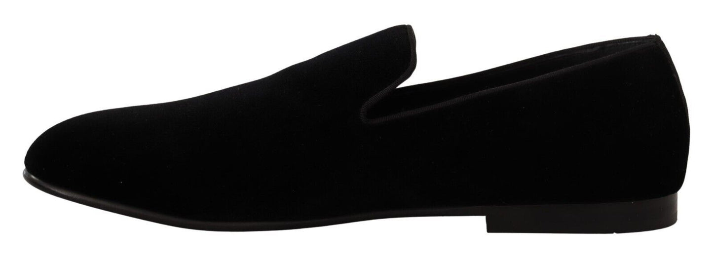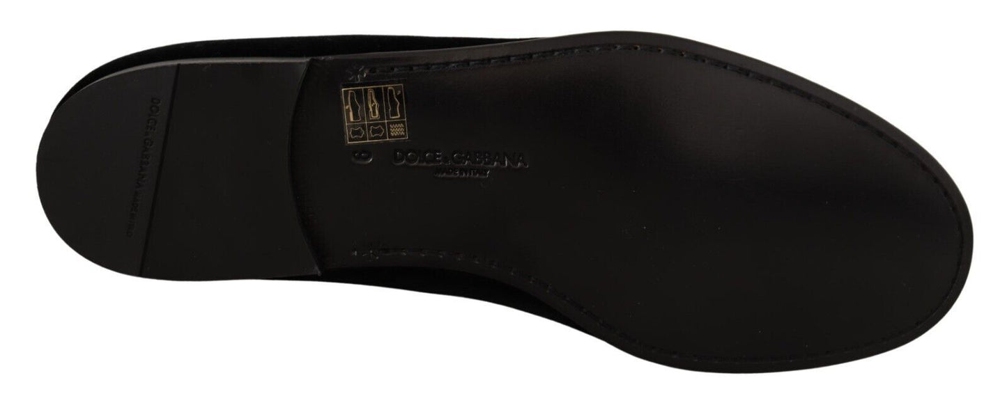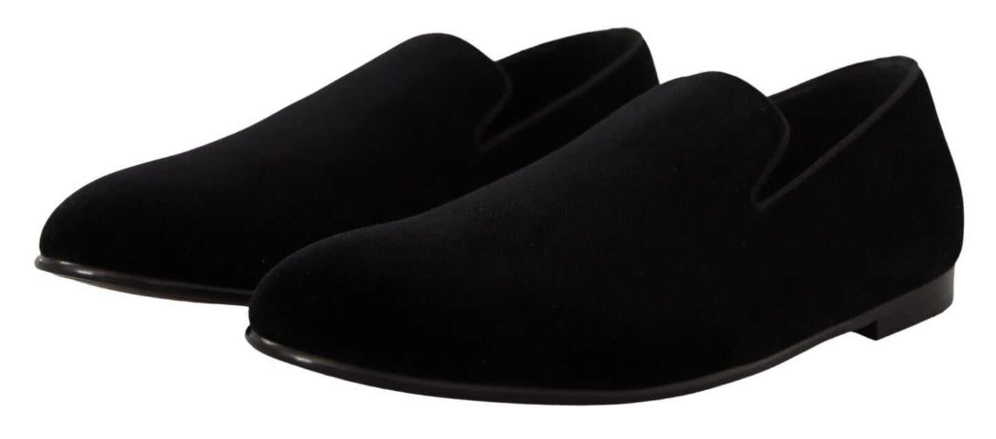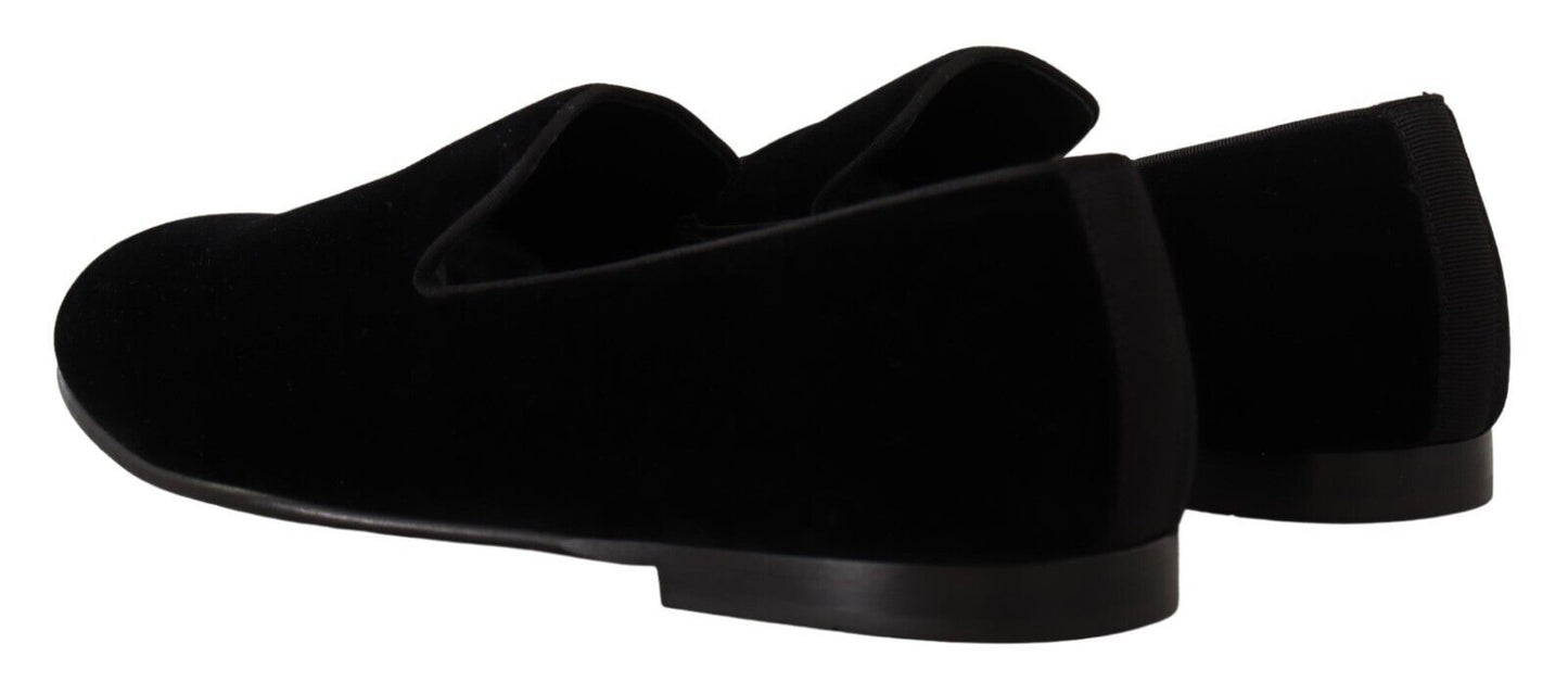 Indulge in the epitome of luxury with our exquisite black velvet loafers. These striking flats are the perfect showcase of Dolce & Gabbana’s commitment to high craftsmanship and refined style. Boasting the iconic logo details and a suave leather sole, these loafers are designed to elevate any ensemble with a touch of Italian elegance. Whether for formal occasions or adding sophistication to your casual attire, this pair is a wardrobe essential for the discerning gentleman.