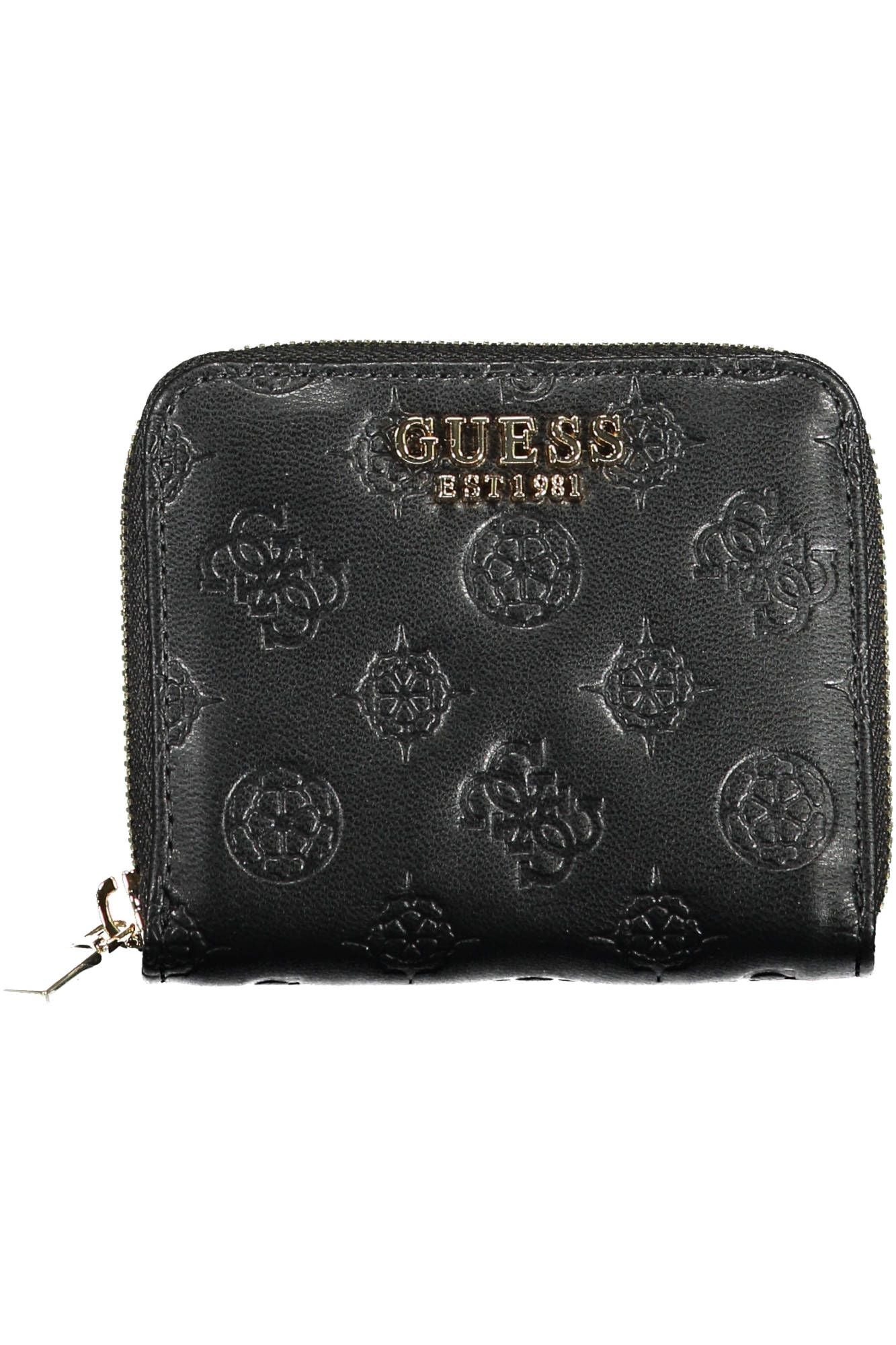 Step up your accessory game with this sleek and stylish black wallet from Guess Jeans. Designed with practicality and elegance in mind, it features multiple internal card spaces, ensuring all your essentials are organized and secure. Contrasting elements give a modern touch, while the zip and button closure provide easy access and safety for your belongings. The signature Guess Jeans logo adds a final touch of brand prestige, presenting not only an accessory but a statement.