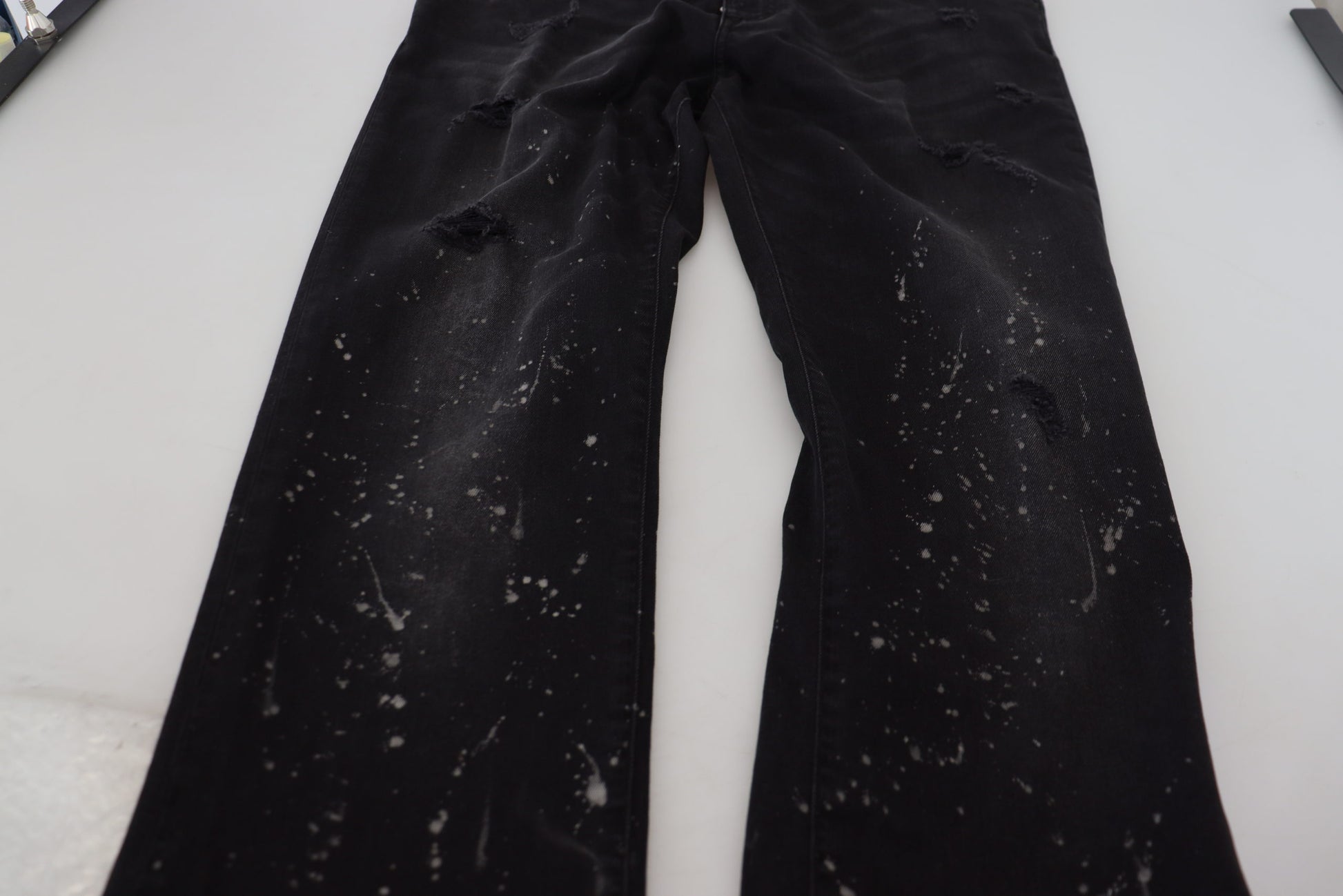 Black Washed Cotton Tattered Denim Jeans