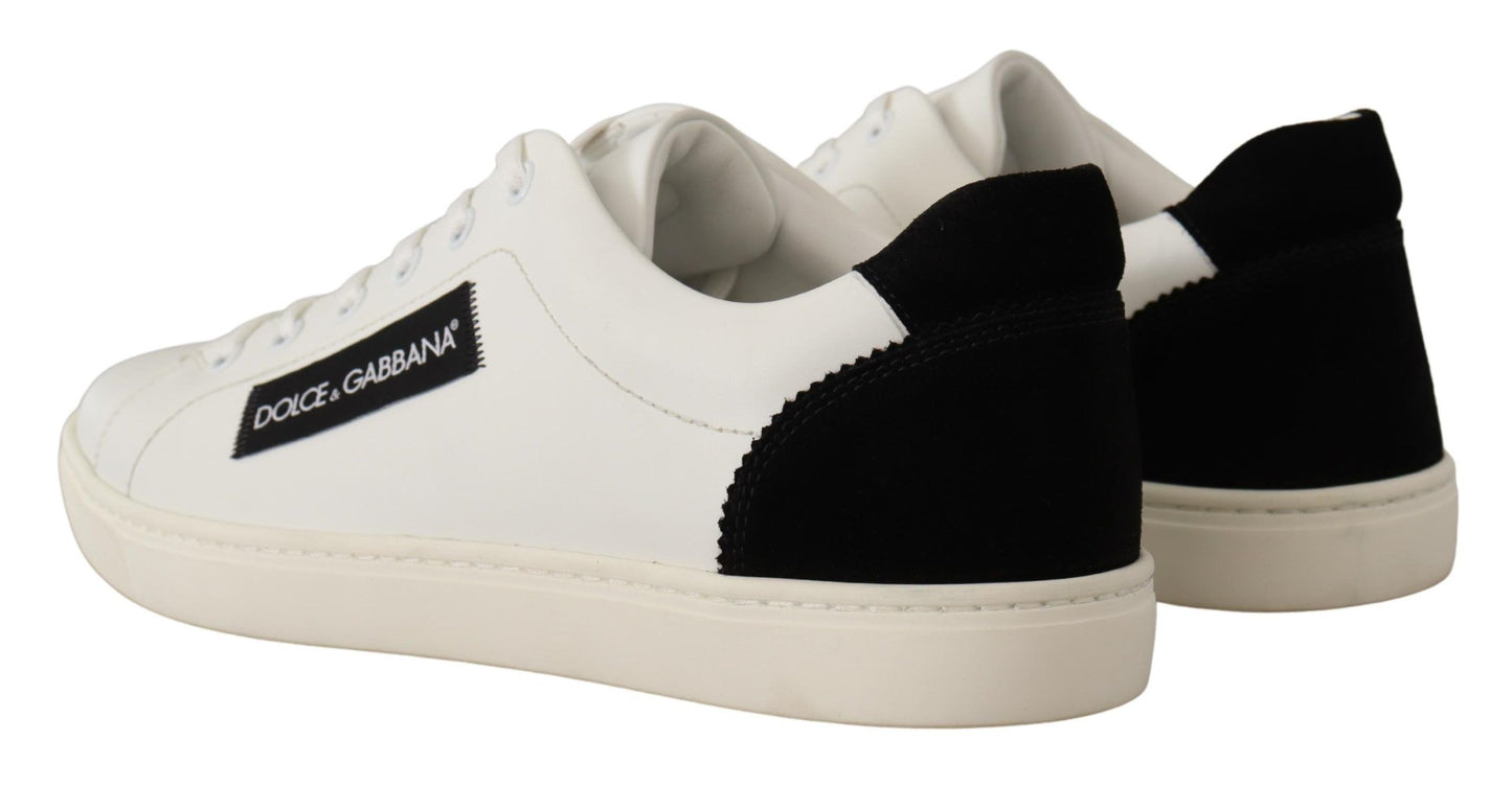 Step into luxury with these impeccable Dolce & Gabbana low-top sneakers. Crafted with exquisite attention to detail, these shoes are not just a statement of style but a testament to quality. With their sleek white and black colorway, 100% leather material, and comfortable rubber sole, they are the perfect blend of fashion and function. Logo details add a distinguished touch, confirming the authenticity and Italian craftsmanship of this stunning footwear.