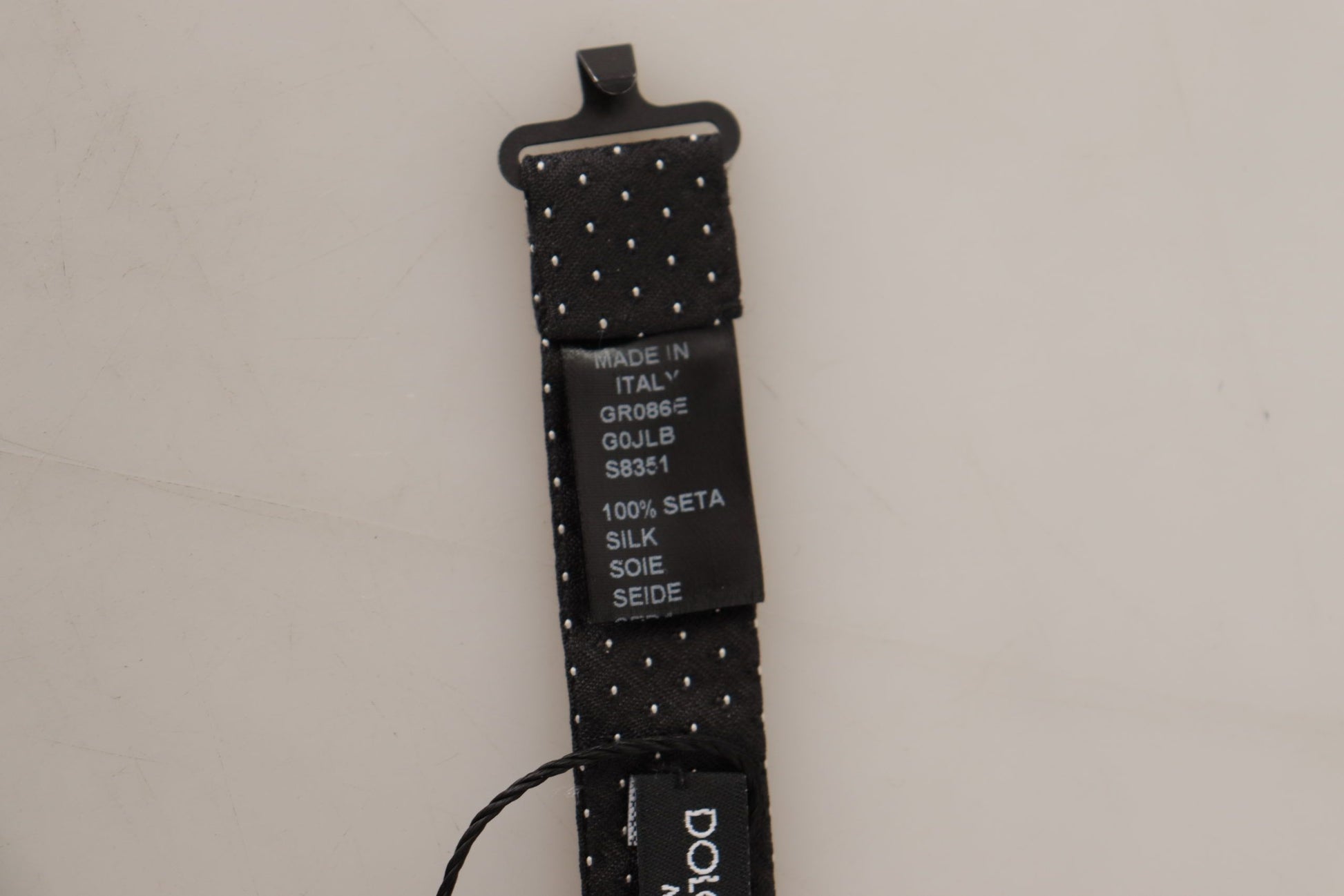 Elevate your ensemble with the quintessential elegance of this Dolce & Gabbana bow tie. Classic in black and white, this accessory is perfect for those who appreciate a sharp, sophisticated look. Crafted from luxurious 100% silk, it offers unparalleled softness and a subtle sheen that catches the light, promising to make a statement at any event. Its adjustable strap ensures a comfortable fit for all neck sizes, while the impeccable Italian craftsmanship speaks volumes of its quality.