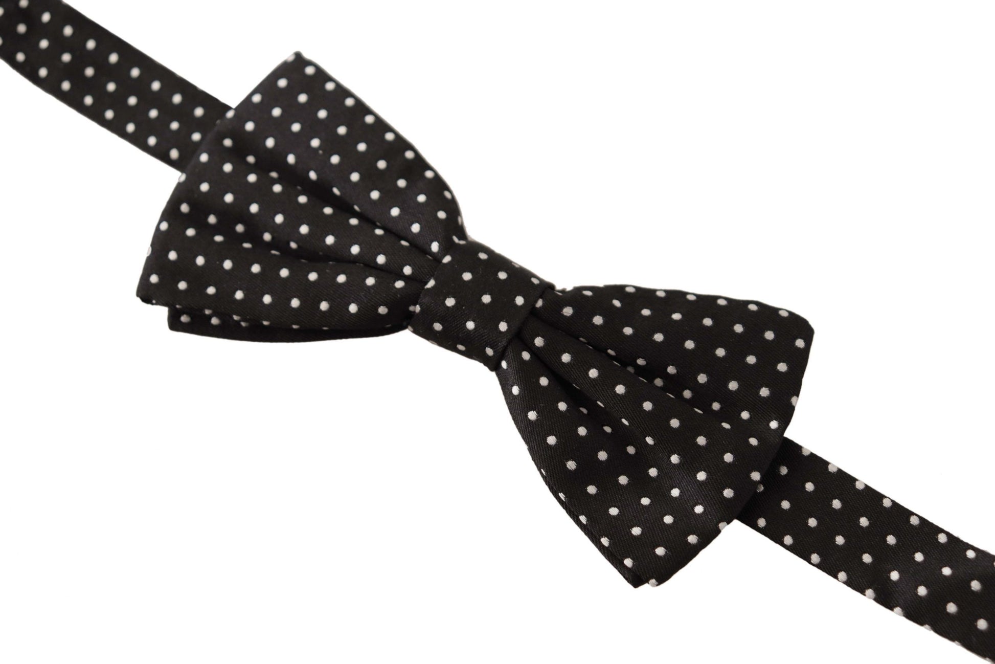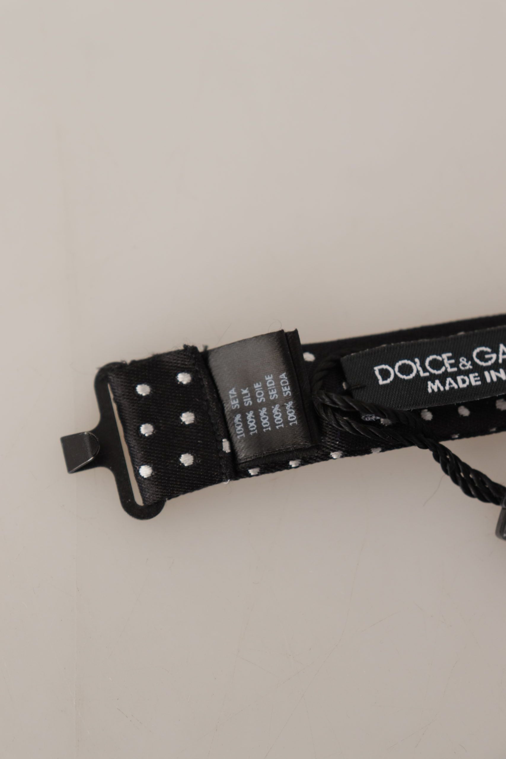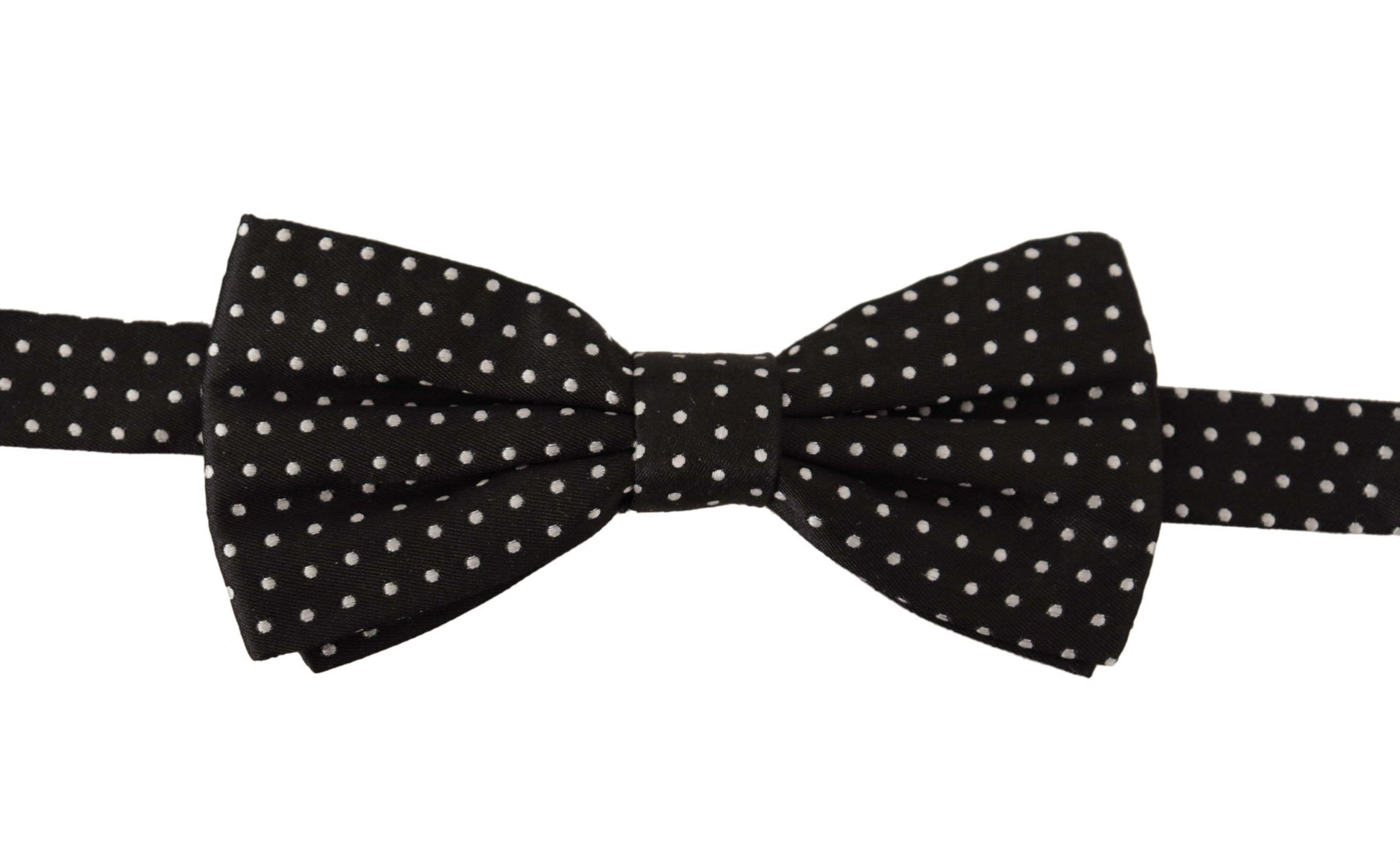 Accentuate your formal attire with this exquisitely crafted Dolce & Gabbana bow tie, perfect for the discerning gentleman looking to add a dash of sophistication to his ensemble. Adorned with a classic black and white polka dot design, this tie is a timeless addition to any wardrobe.