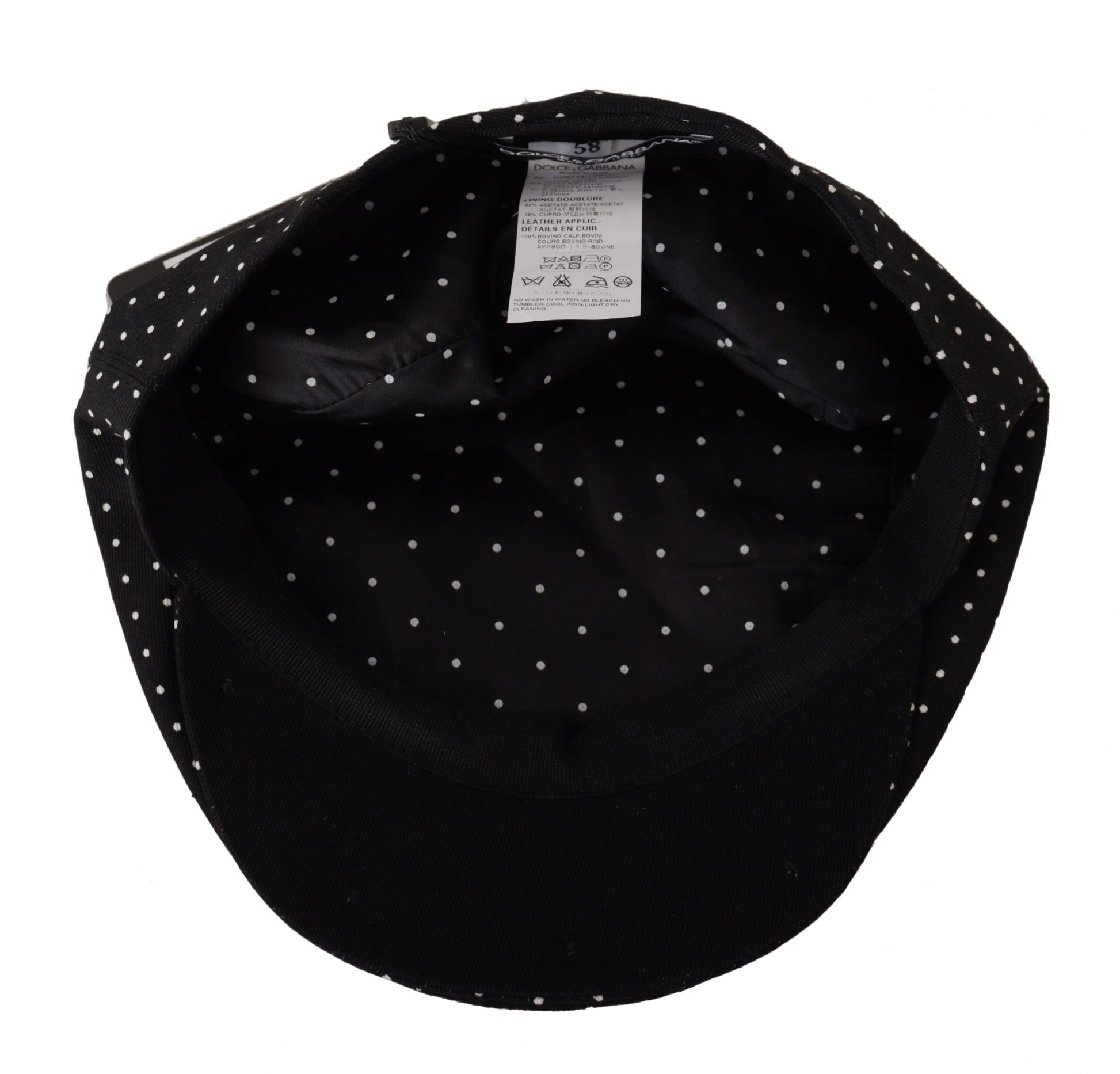 Step out in style with this sophisticated Newsboy hat by Dolce & Gabbana. Its classic black hue is playfully contrasted with white polka dots, offering an iconic look that’s perfect for any dapper gentleman. Crafted with a comfortable blend of cotton and elastane for a perfect fit, this hat is a testament to timeless Italian fashion.