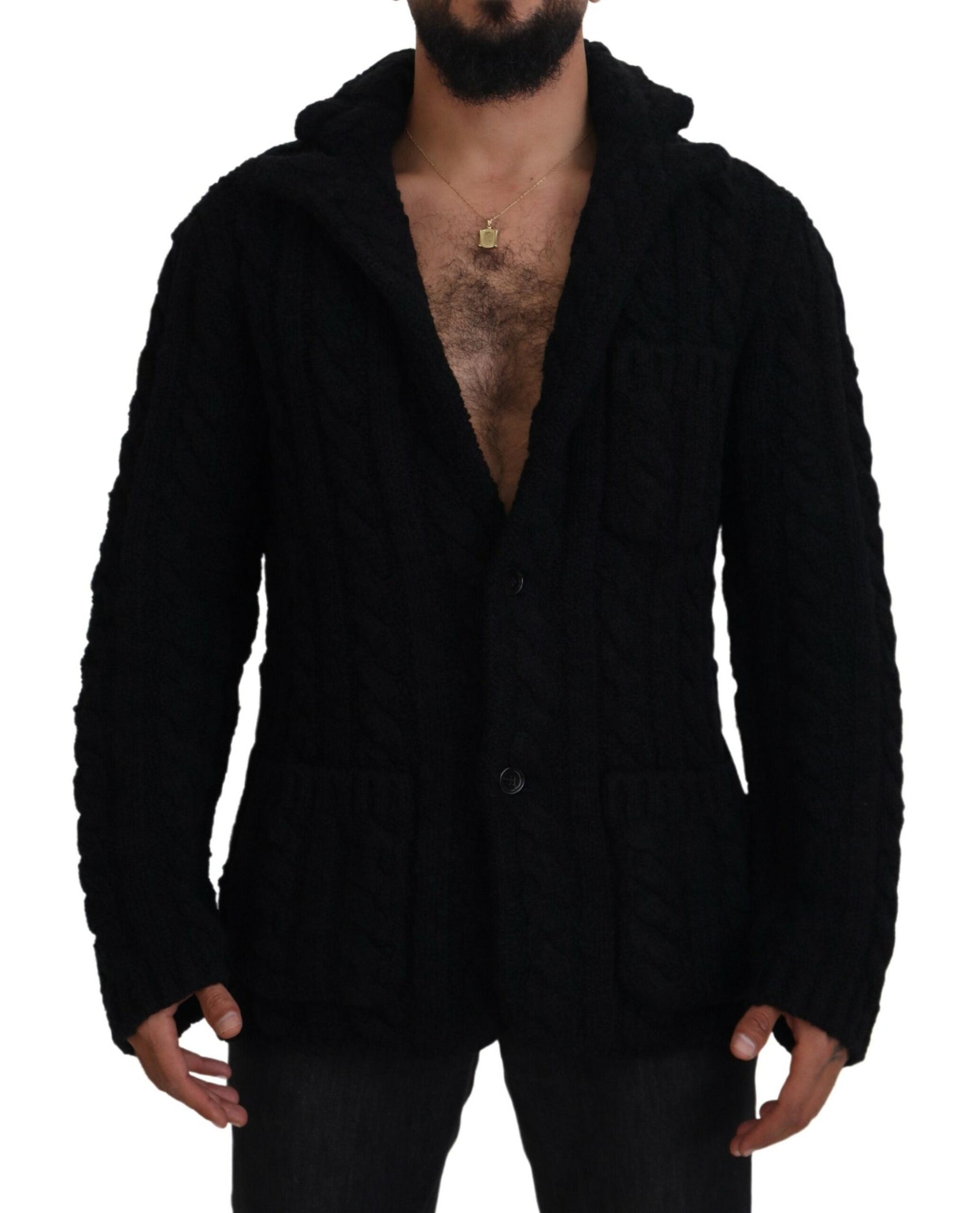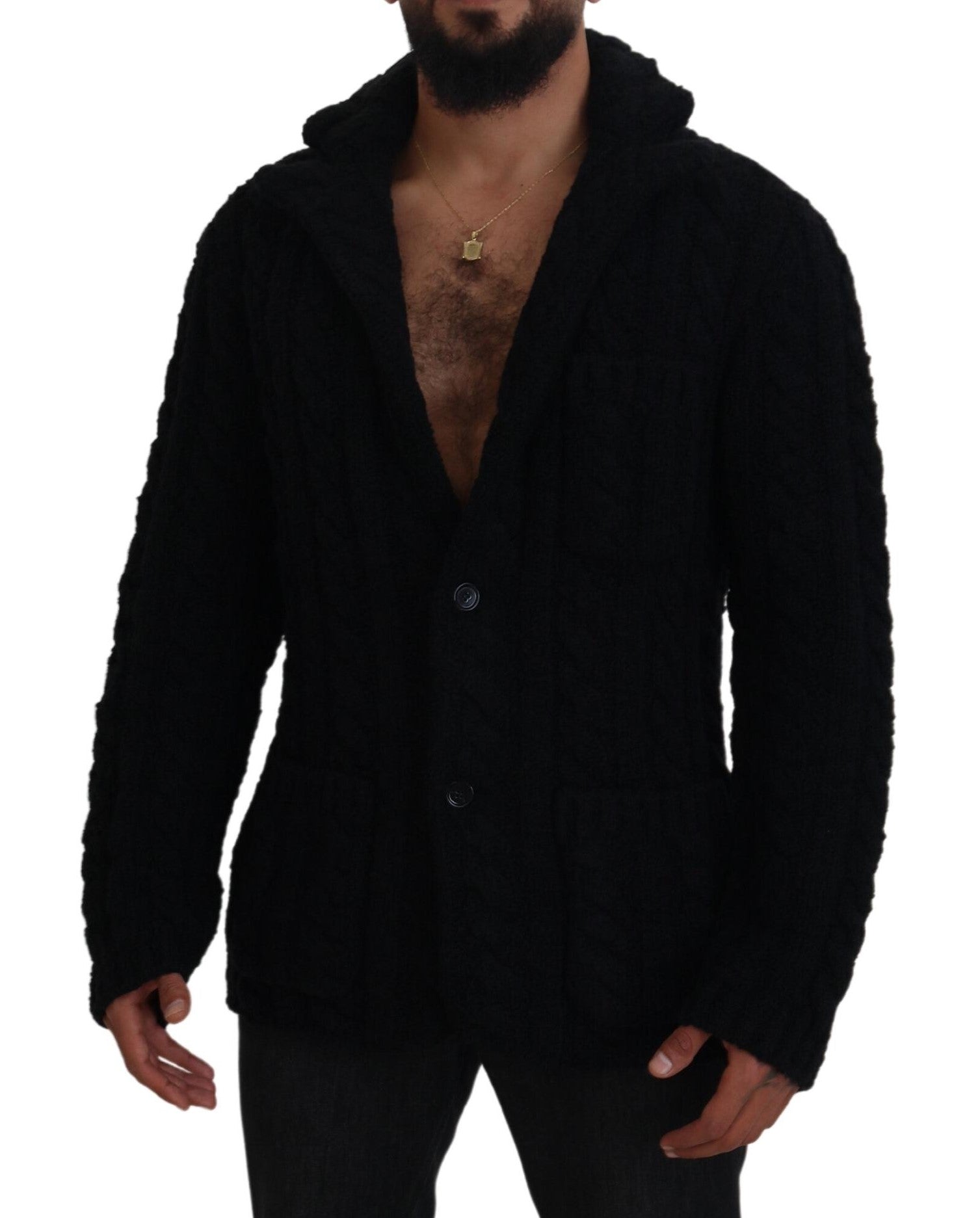 Elegant Black Wool-Cashmere Cardigan Sweater