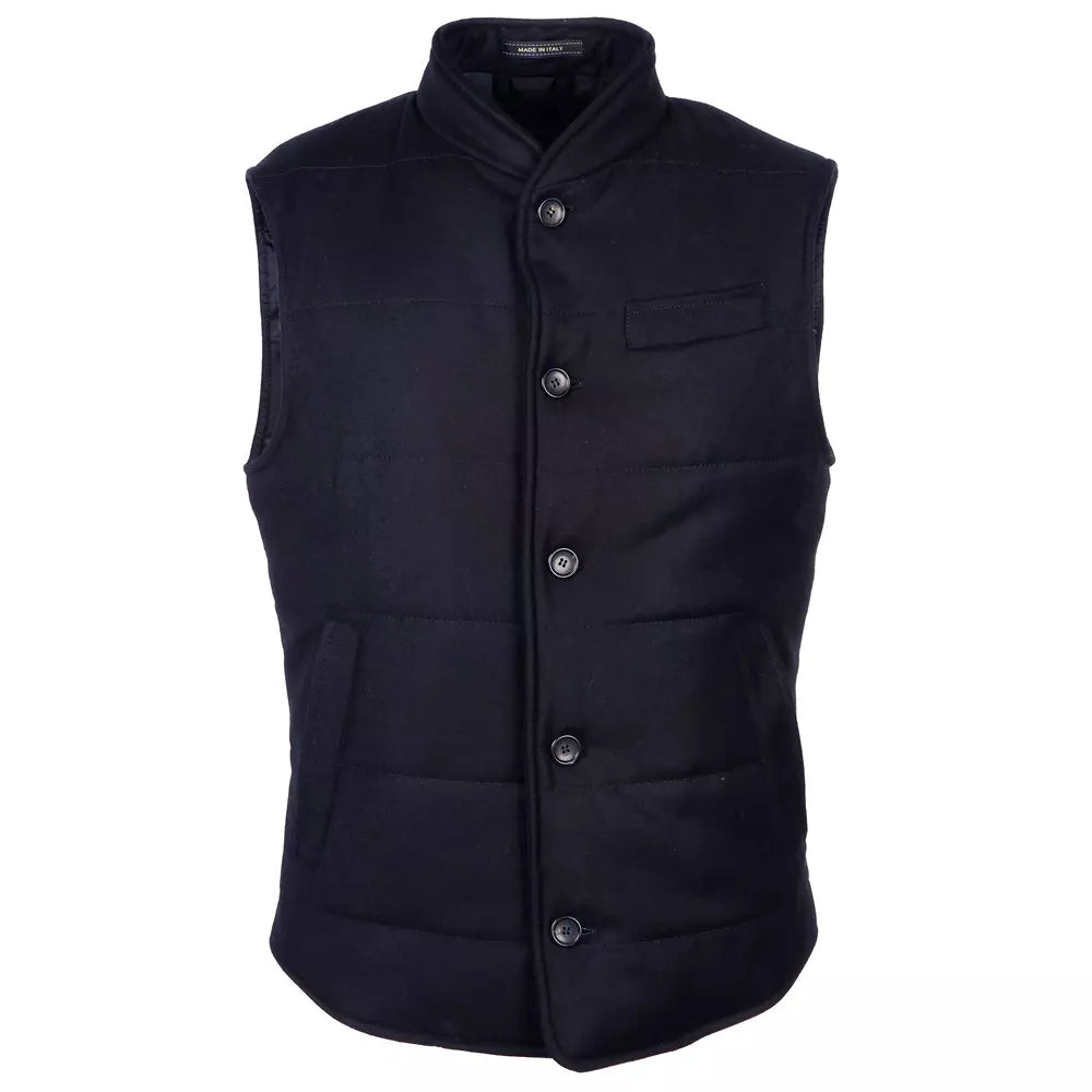 Discover the epitome of Italian craftsmanship with this sophisticated men’s vest, a testament to the sartorial elegance that ‘Made in Italy’ always delivers. Constructed from a luxurious blend of 95% Wool and 5% Cashmere, the vest offers unmatchable warmth and softness. It features a stylish front button closure, a classic two-pocket design complemented by a chest pocket, as well as internal pockets for additional functionality. The tone-on-tone lining ensures a seamless, comfortable fit, perfect for layering over your finest shirts. Embrace timeless fashion and make a statement with this impeccable piece.