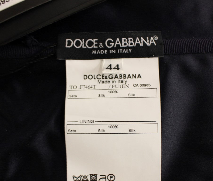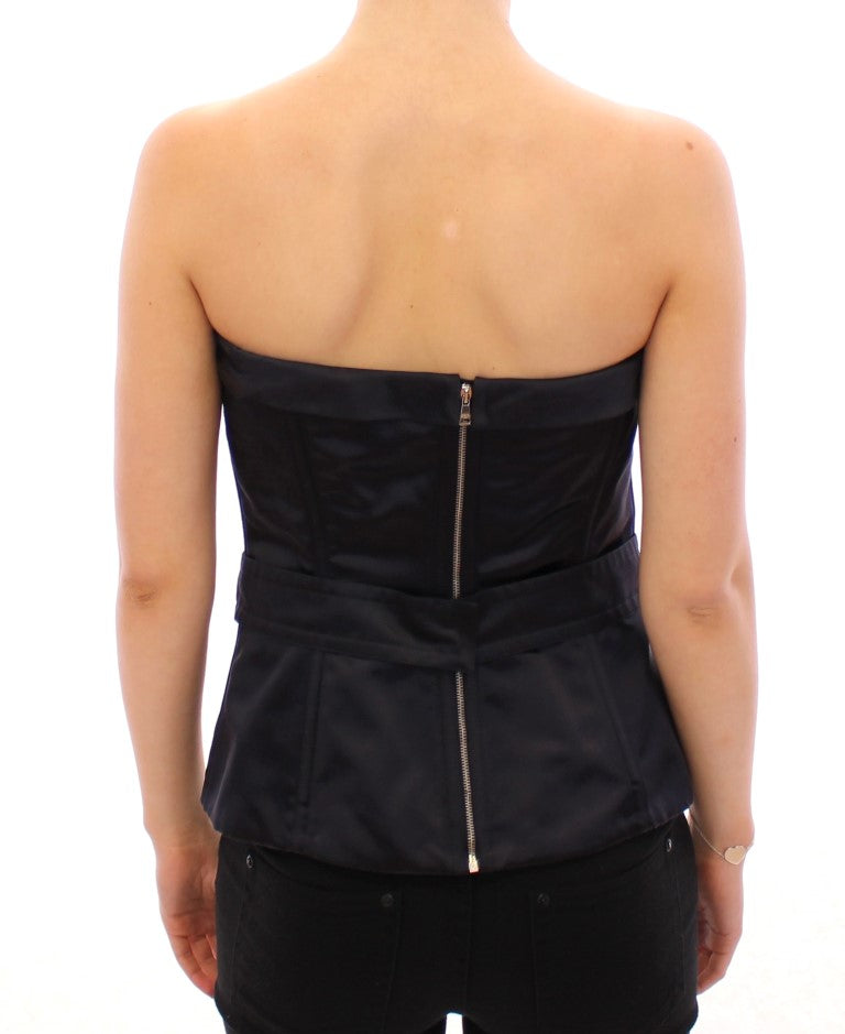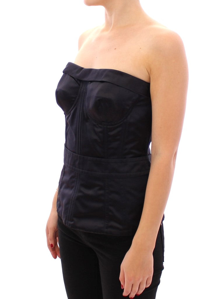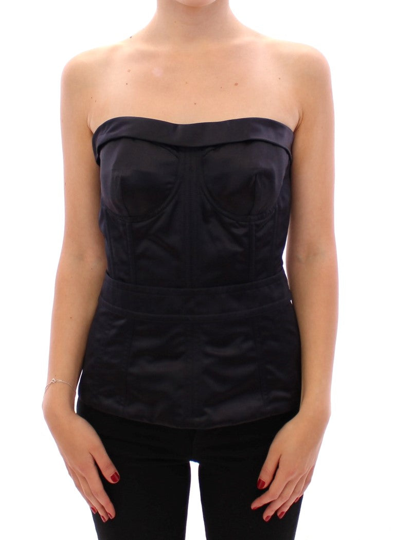 Indulge in the epitome of luxury with this exquisite Italian-made strapless corset top by Dolce & Gabbana. Constructed from 100% pure silk, this item exudes sophistication and style. The stunning dark blue hue and precise tailoring embody the brand’s renowned attention to detail. Perfect for elevating any ensemble, this top features a full zipper closure at the back and a chic waist belt with a button closure, ensuring a flawless fit.