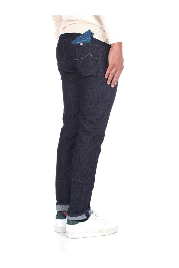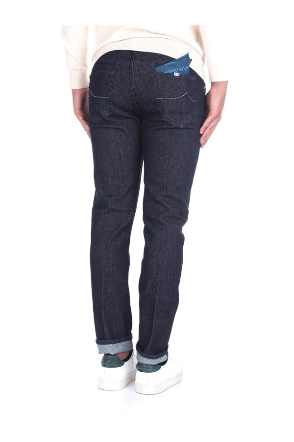 Elevate your denim collection with our slim fit five-pocket jeans, a blend of premium materials and Italian craftsmanship. These jeans feature a smooth leather patch, subtle grey detailing, and a classic button closure. A stylish handkerchief in the back pocket adds a touch of elegance. Perfect for adding a sophisticated edge to your casual ensemble.