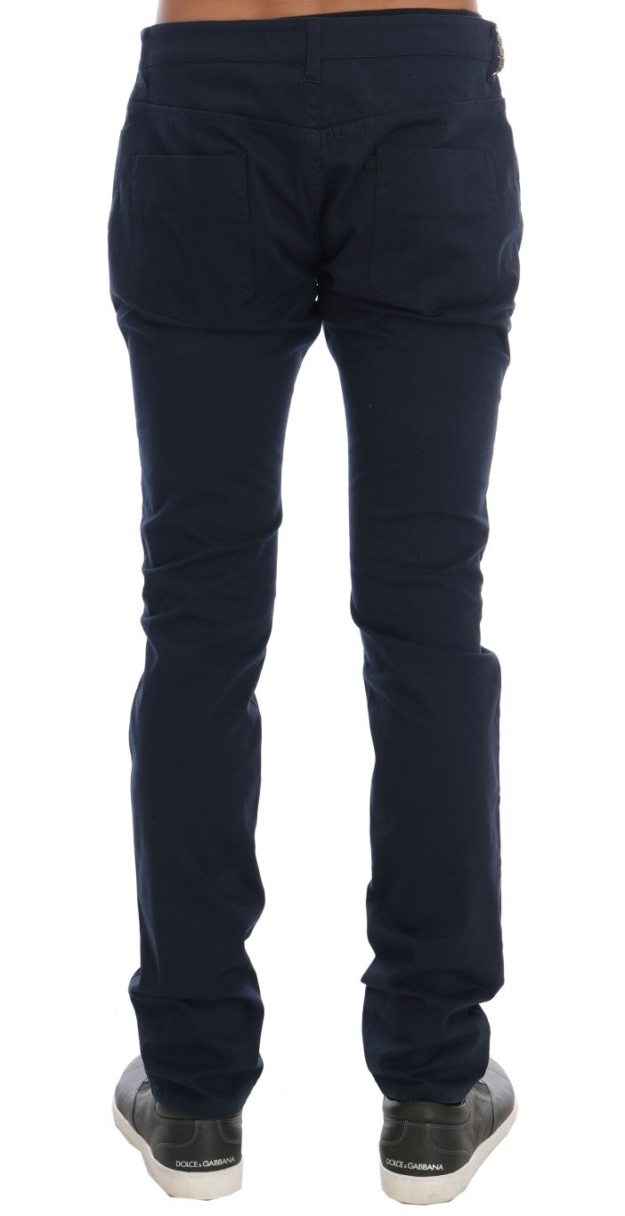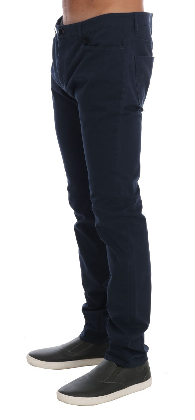 Elegant Blue Slim Fit Cotton Stretch Pants