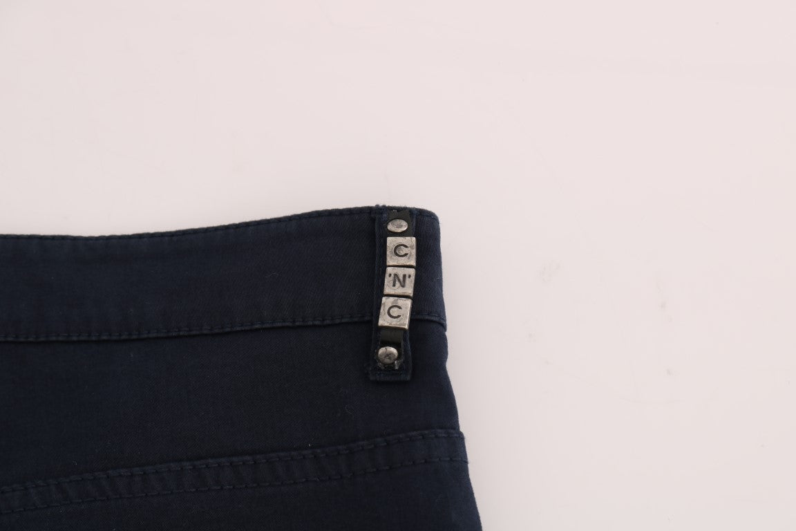 Enhance your wardrobe with the impeccable sophistication of Costume National. These slim fit pants, in a striking shade of blue, are a testament to style and comfort. Fashioned from a blend of cotton and elastane, they guarantee a perfect fit with enough stretch to move with you. Tailored to offer both a sleek silhouette and practicality, they feature a classic four-pocket design and a seamless zipper fly closure. Adorned with subtle logo details, these trousers are an essential addition for those who appreciate refined elegance in their everyday attire.