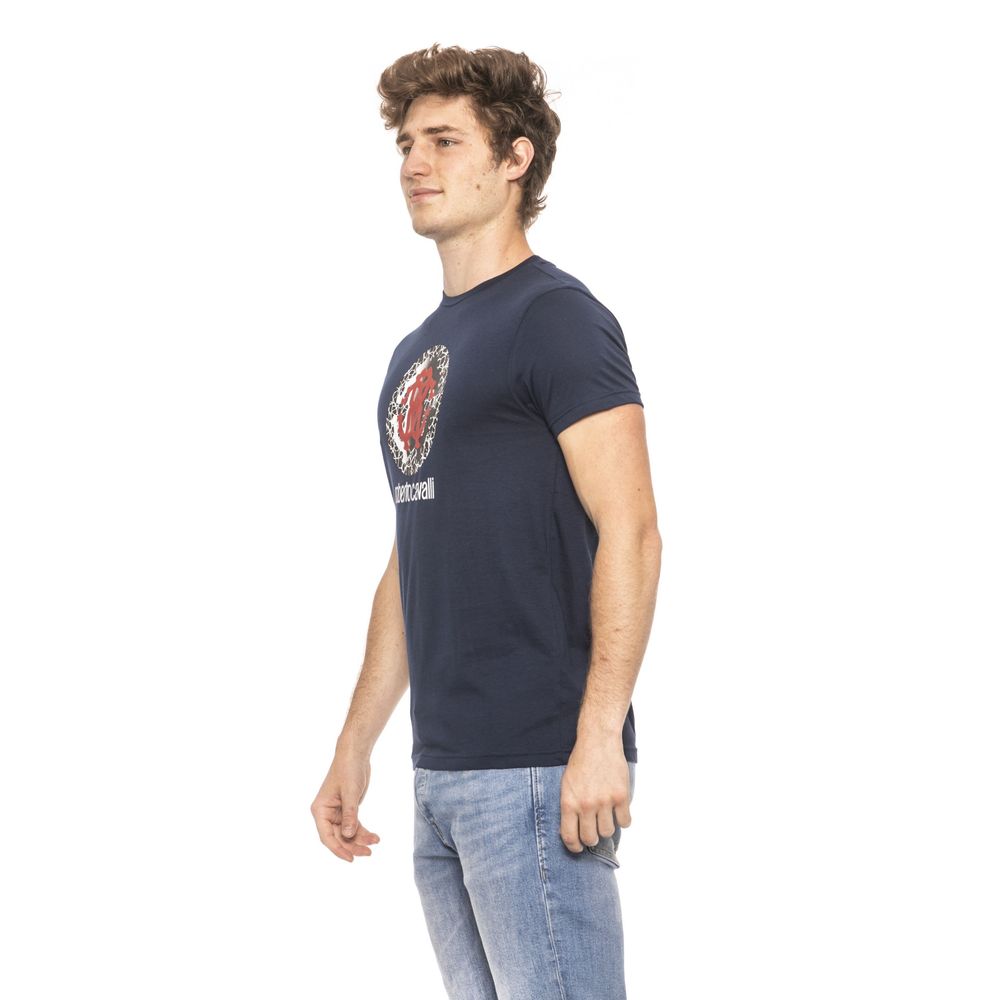 Exude casual elegance with this tasteful and versatile blue T-shirt, flaunting a chic front logo print that adds an element of luxury to your everyday style. This Roberto Cavalli Beachwear piece is perfect for those who appreciate comfort without compromising on high-end fashion. Crafted from pure cotton, it promises breathability and a soft touch against your skin.