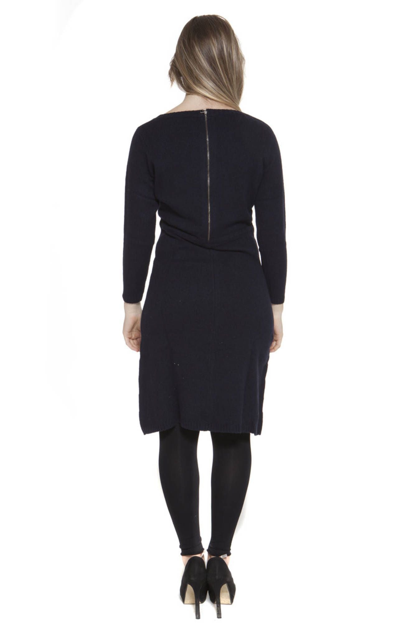 Chic Quarter-Sleeve Wool Dress with Back Zip Detail