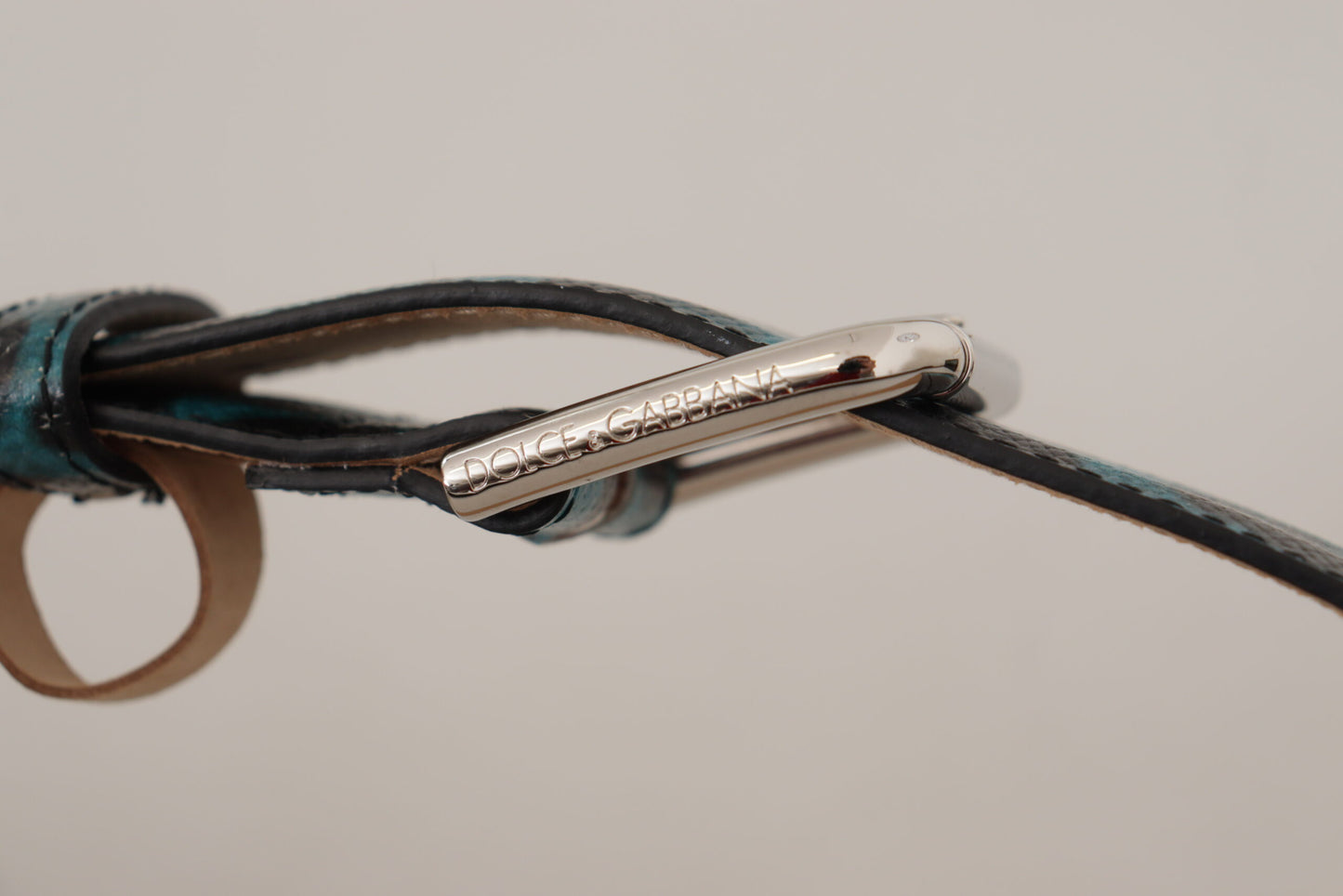 Indulge in the epitome of Italian luxury with this exquisite belt from Dolce & Gabbana. In a stunning shade of blue, this belt is more than an accessory—it’s a statement. Crafted from premium leather, it features a distinctive metal buckle with the brand’s logo engraved for that touch of elegance and recognition. Perfect for accentuating your waistline with style and sophistication.
