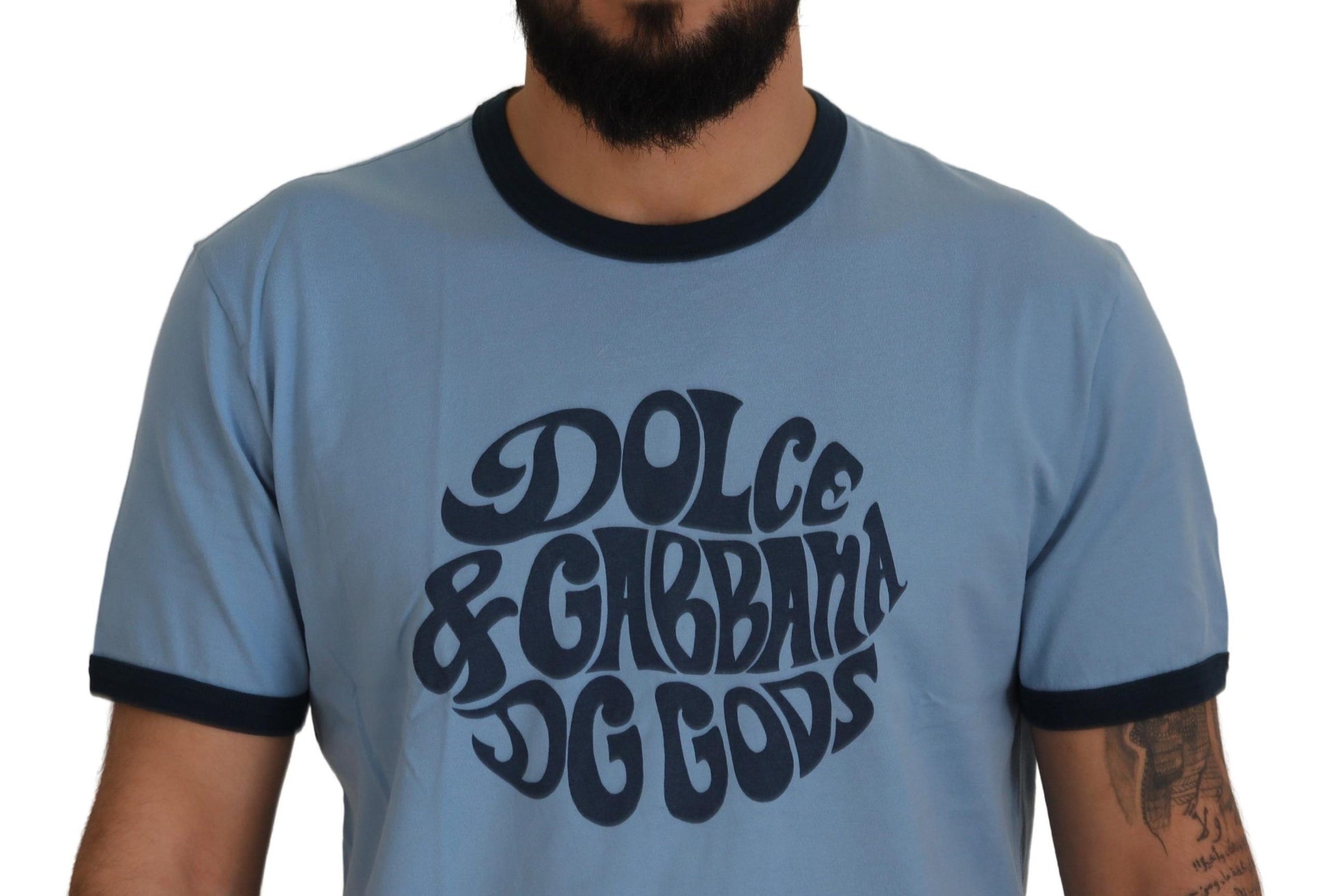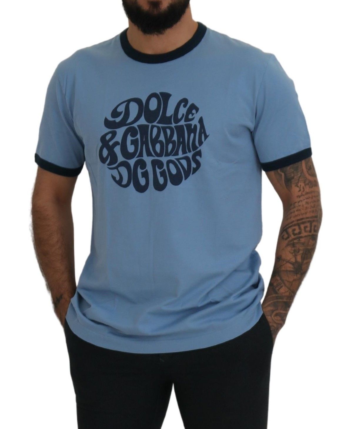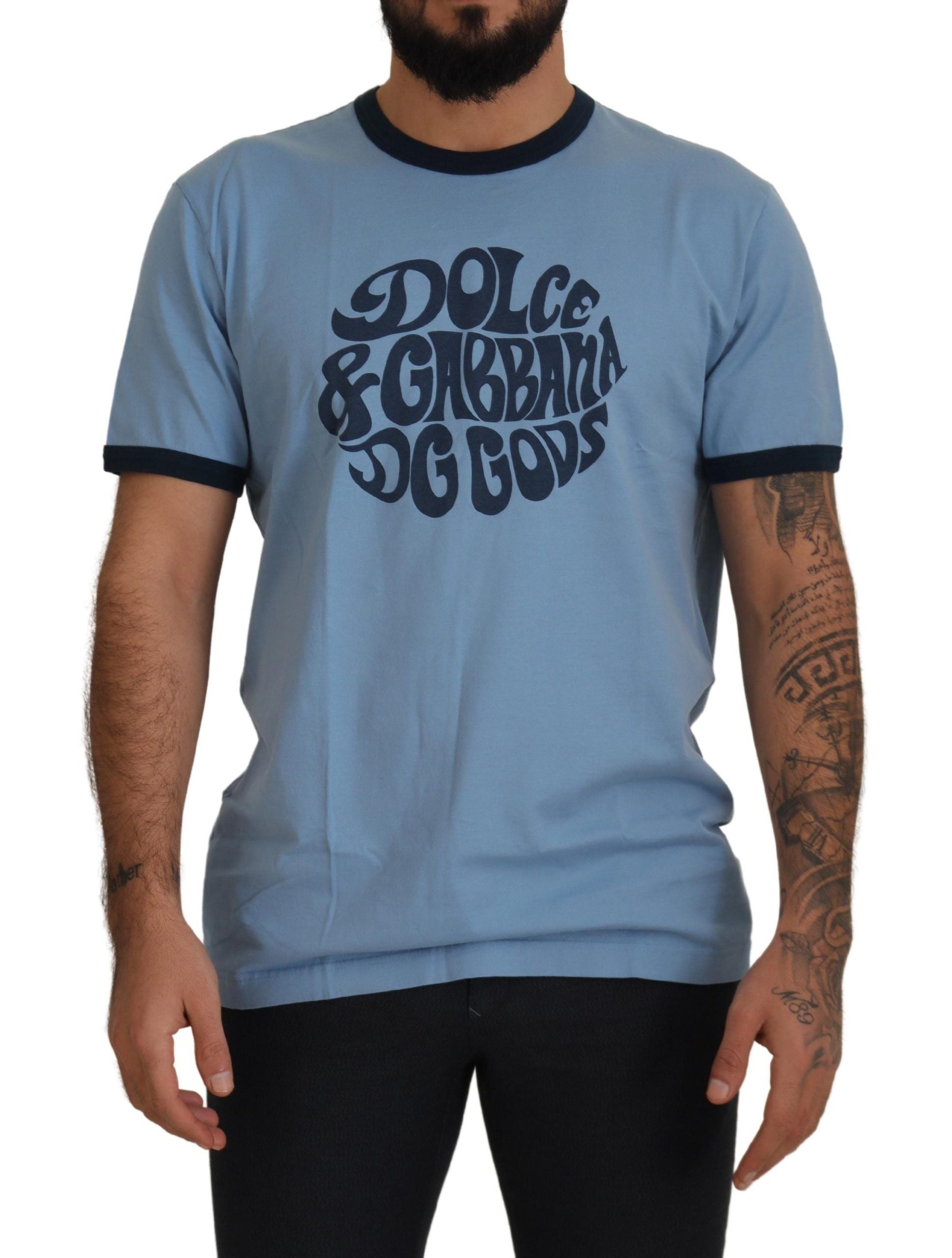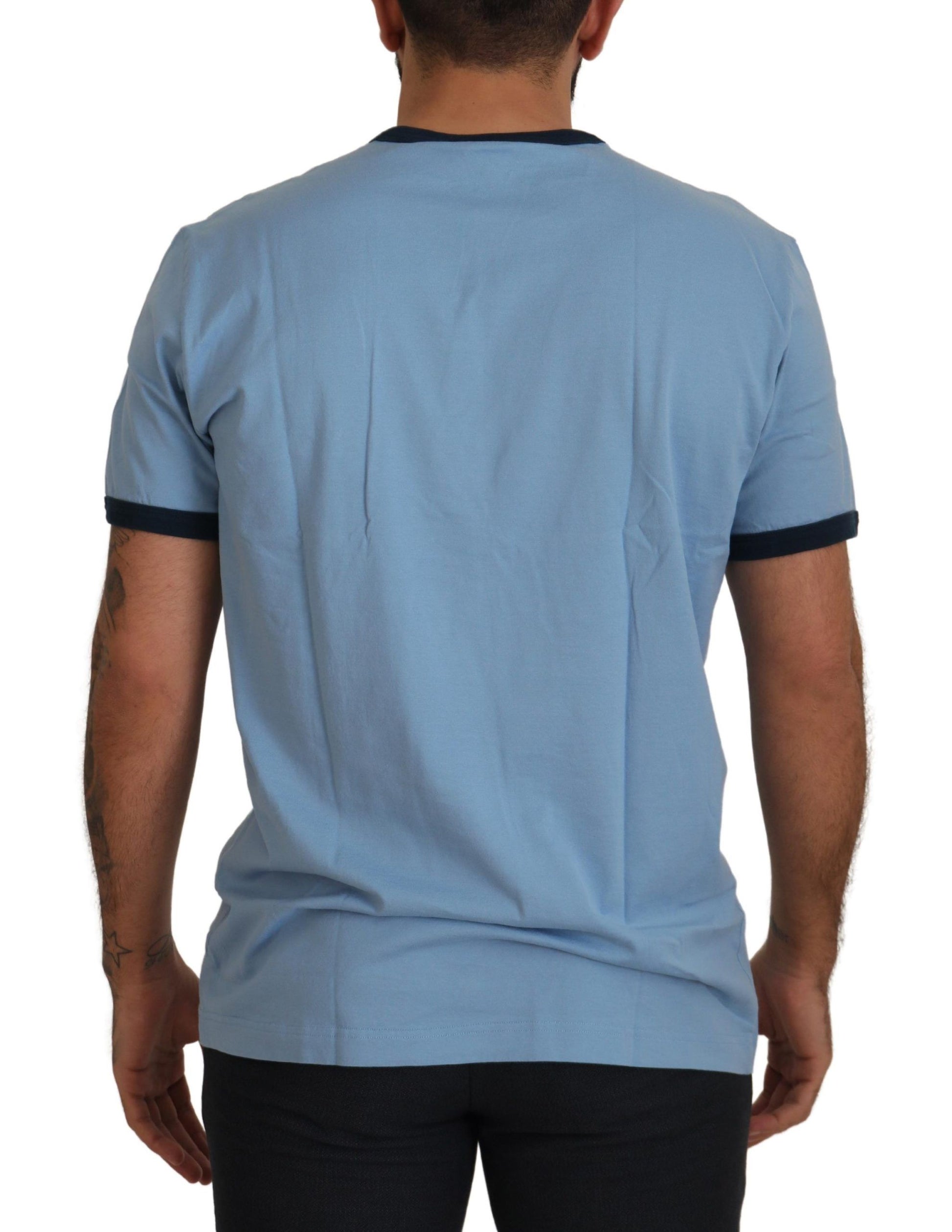 Discover the epitome of Italian luxury with this stunning Dolce & Gabbana T-shirt. Crafted from the finest 100% cotton, it features a classic crewneck design in a serene light blue hue that simply radiates sophistication. Accented with an eye-catching logo motif, it offers both unparalleled comfort and signature style. This T-shirt, with its regular fit and refined details, is a true testament to timeless fashion, proudly Made in Italy.