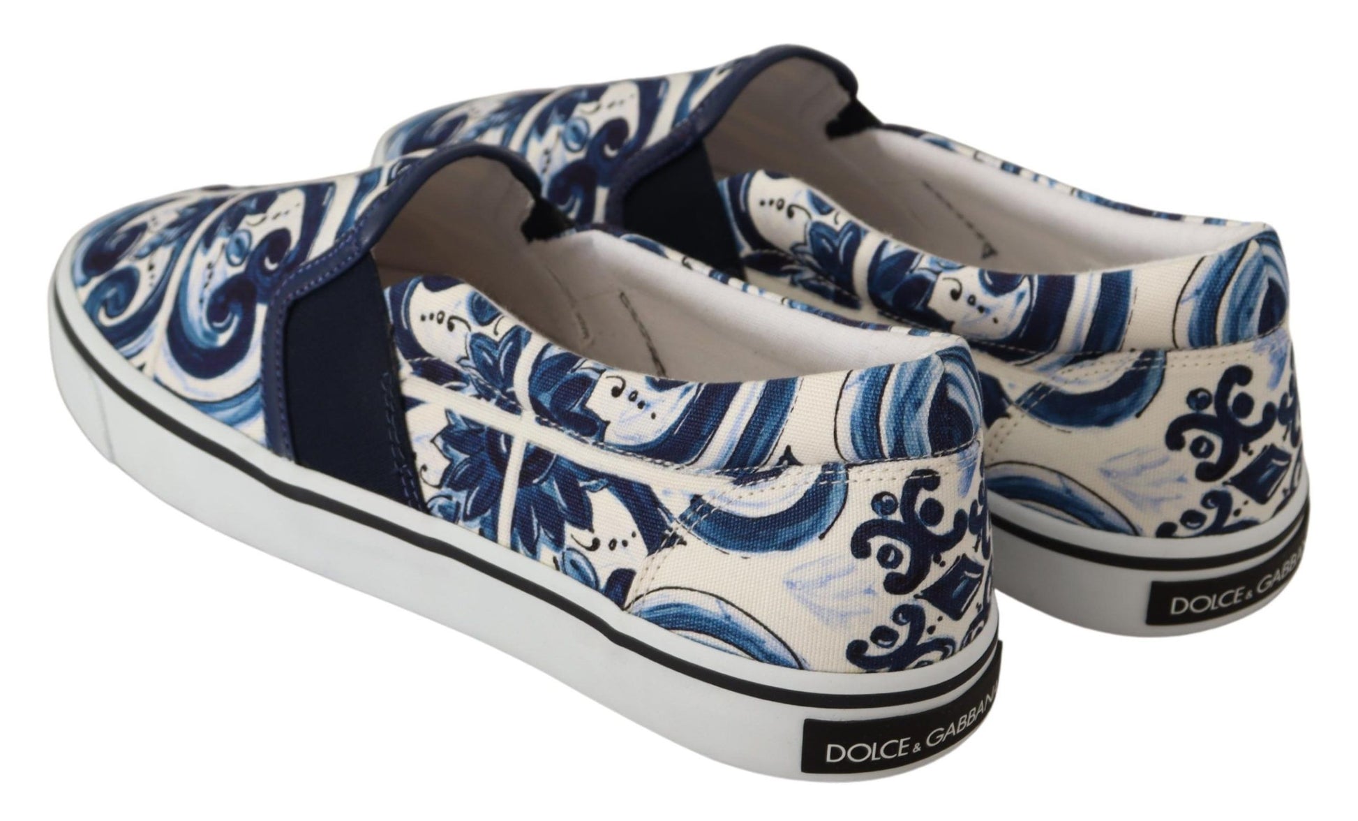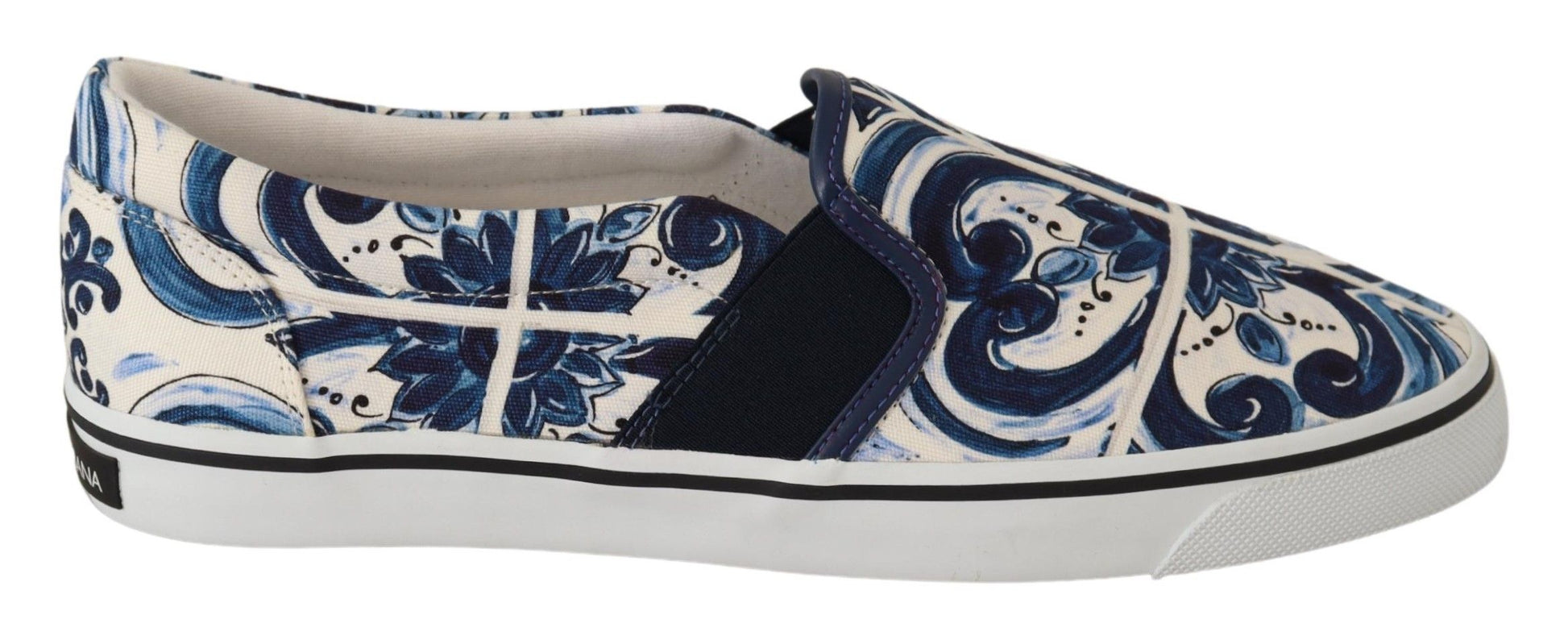 Indulge in the epitome of Italian luxury with these stunning Majestic Majolica Canvas Loafers by Dolce & Gabbana. Crafted with sumptuous cotton and featuring a vivid blue majolica print, these loafers epitomize high craftsmanship and style. Perfectly blending comfort with a rubber sole and radiating elegance with exquisite logo details, they’re an essential addition to your sophisticated wardrobe.