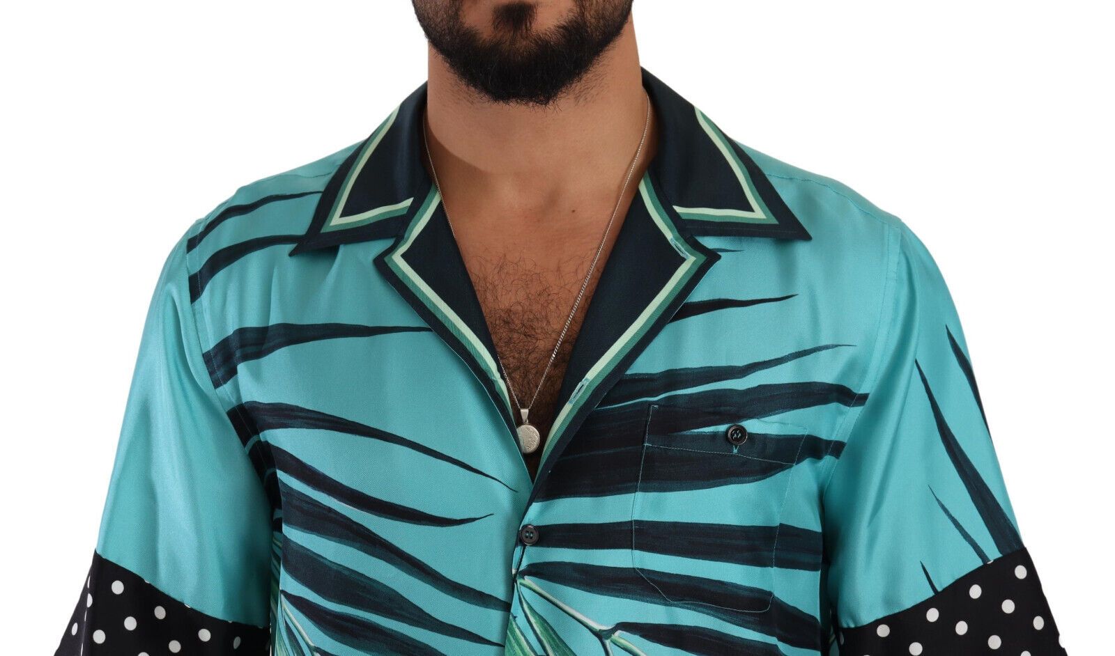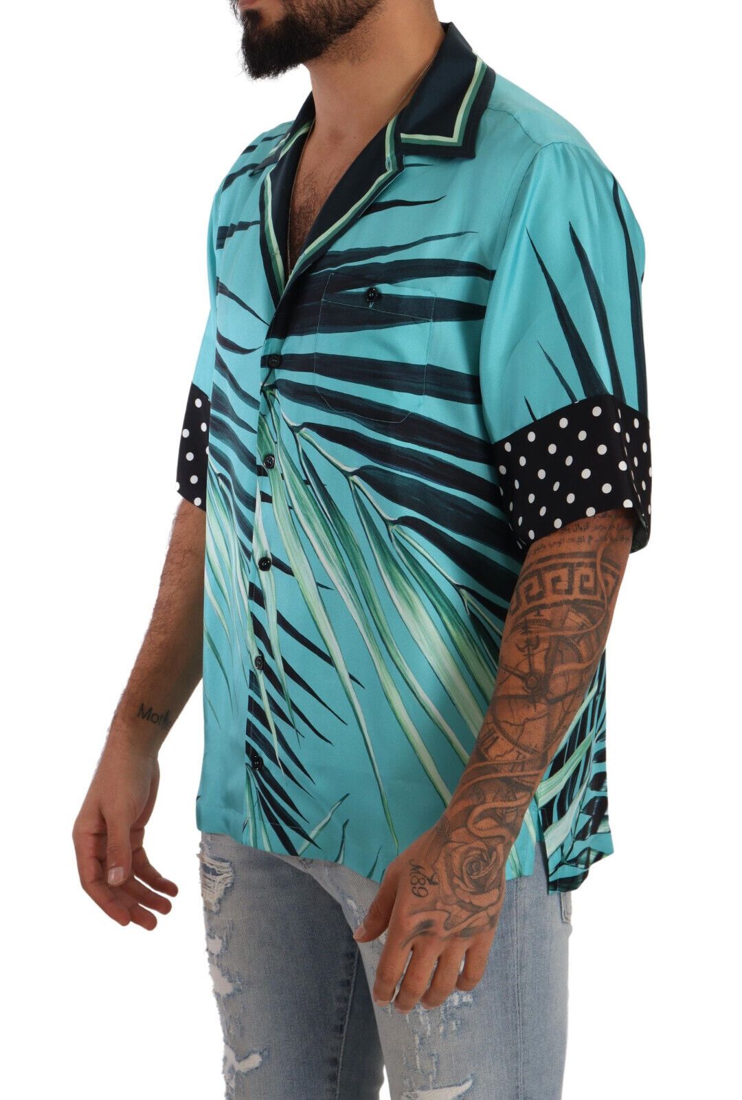 Exude timeless elegance with this Dolce & Gabbana silk casual shirt, featuring a chic polka dot design. Perfectly embodying luxury, this shirt with its oversize fit ensures both comfort and style. A classic neck and short sleeves complement the front button-down closure, making it an impeccable choice for any sophisticated wardrobe.