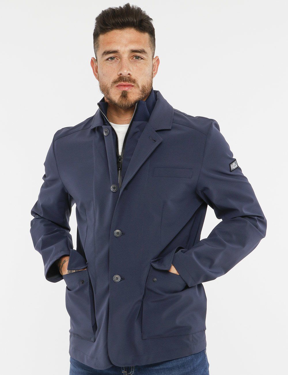 Experience the ultimate blend of style and functionality with our sleek windbreaker. Crafted from high-quality 100% Polyester, this jacket features a versatile removable inner waistcoat that zips out for lighter wear. Designed with a classic collar and secured with a sturdy external button closure, this piece ensures you stay protected from the elements without compromising on style. A convenient breast pocket and frontal pockets with secure snap-button closures provide ample space for your essentials, making it perfect for the modern man on the go.