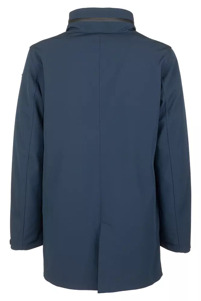Experience the perfect blend of style and functionality with our Men’s Technical Fabric Jacket. Designed for the modern man on the go, this jacket features a detachable hood concealed within the collar, ensuring you’re prepared for any weather. A smooth front zip fastening provides seamless access while the interior and side button pockets offer secure storage for your essentials. Crafted from a durable polyester-elastane blend, this jacket promises comfort and flexibility in a sleek blue hue that complements any ensemble.