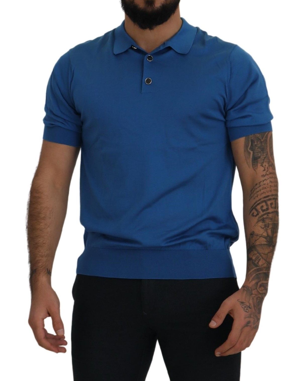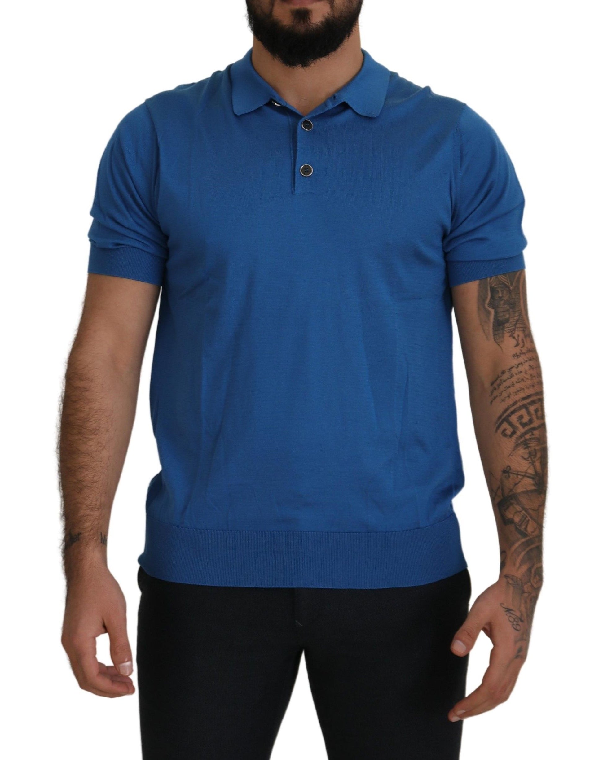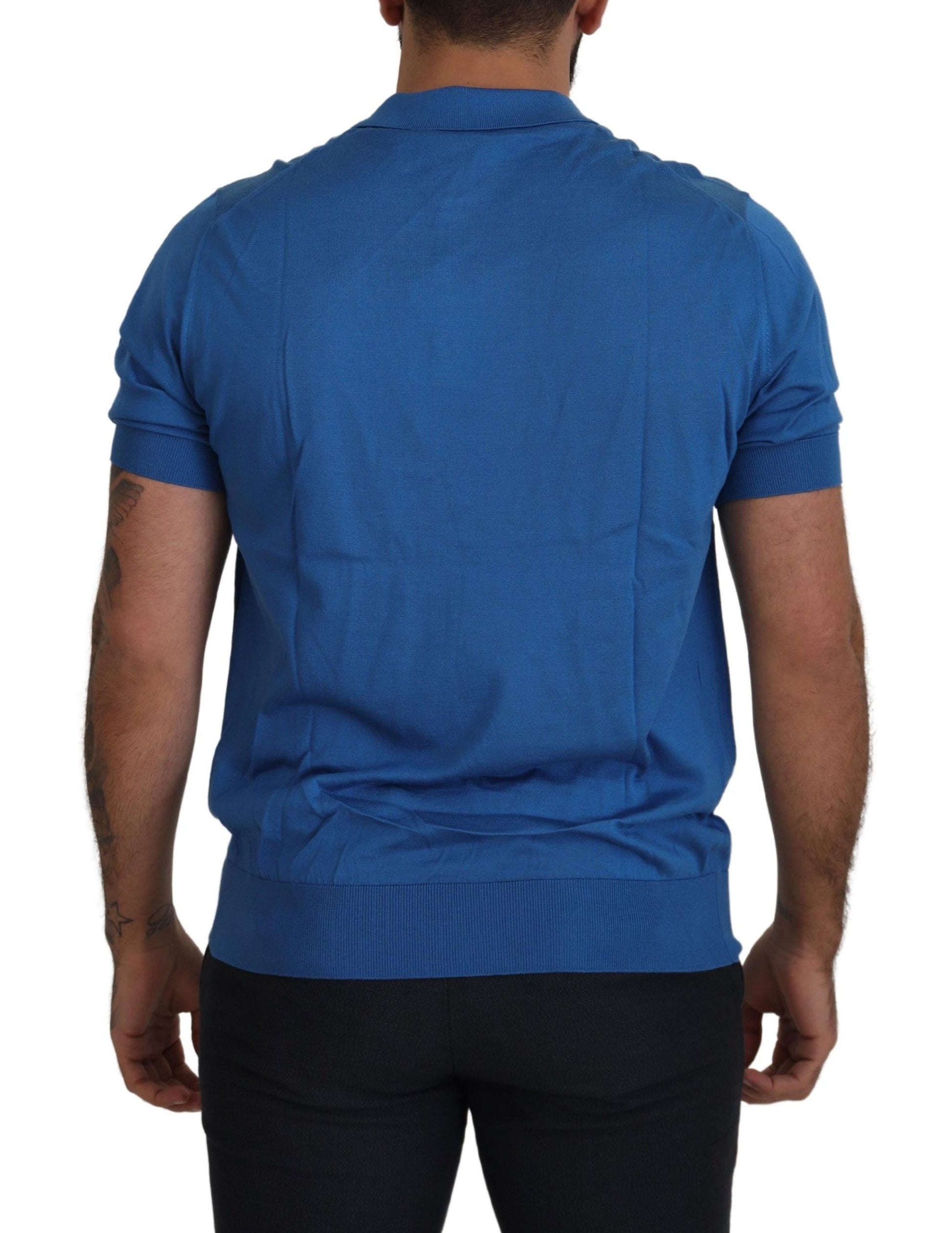 Embrace luxurious casual style with this exquisite Dolce & Gabbana Polo t-shirt. Boasting brand new authenticity tags, this menswear piece is a fashion staple crafted entirely from silk. The rich blue hue complements the sophisticated design featuring short sleeves and a classic collared neckline. With a regular fit and subtle logo details, this t-shirt is a testament to Italian craftsmanship and timeless elegance.