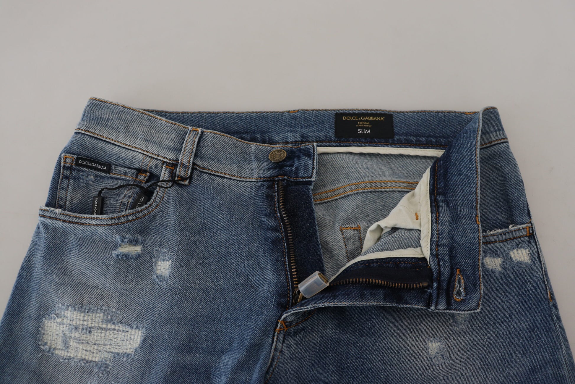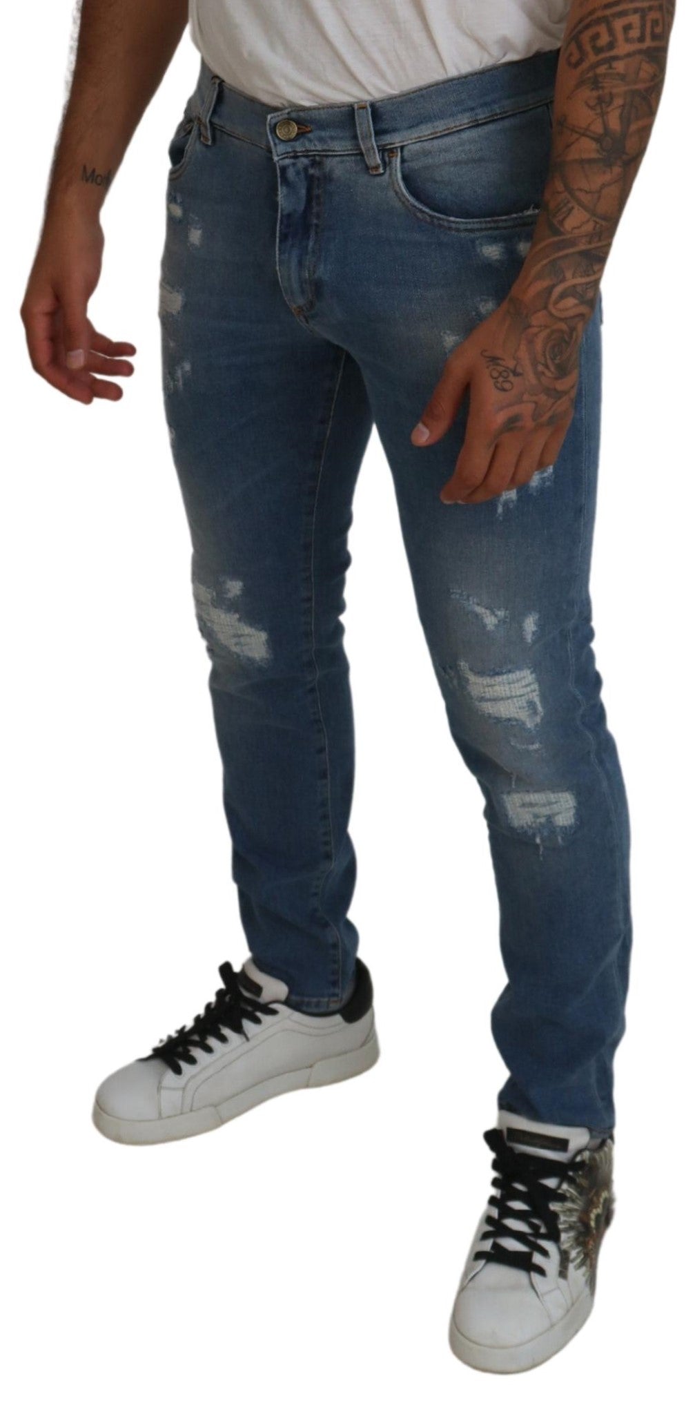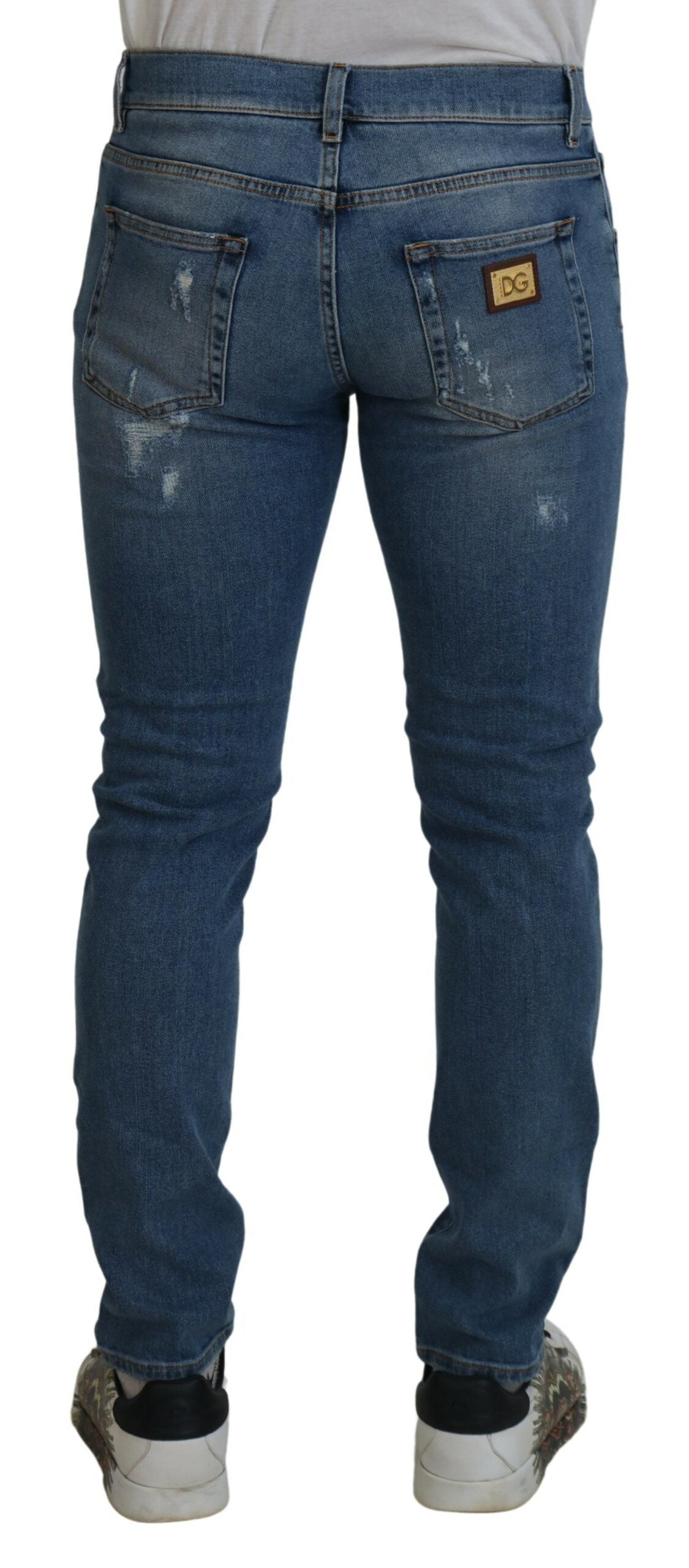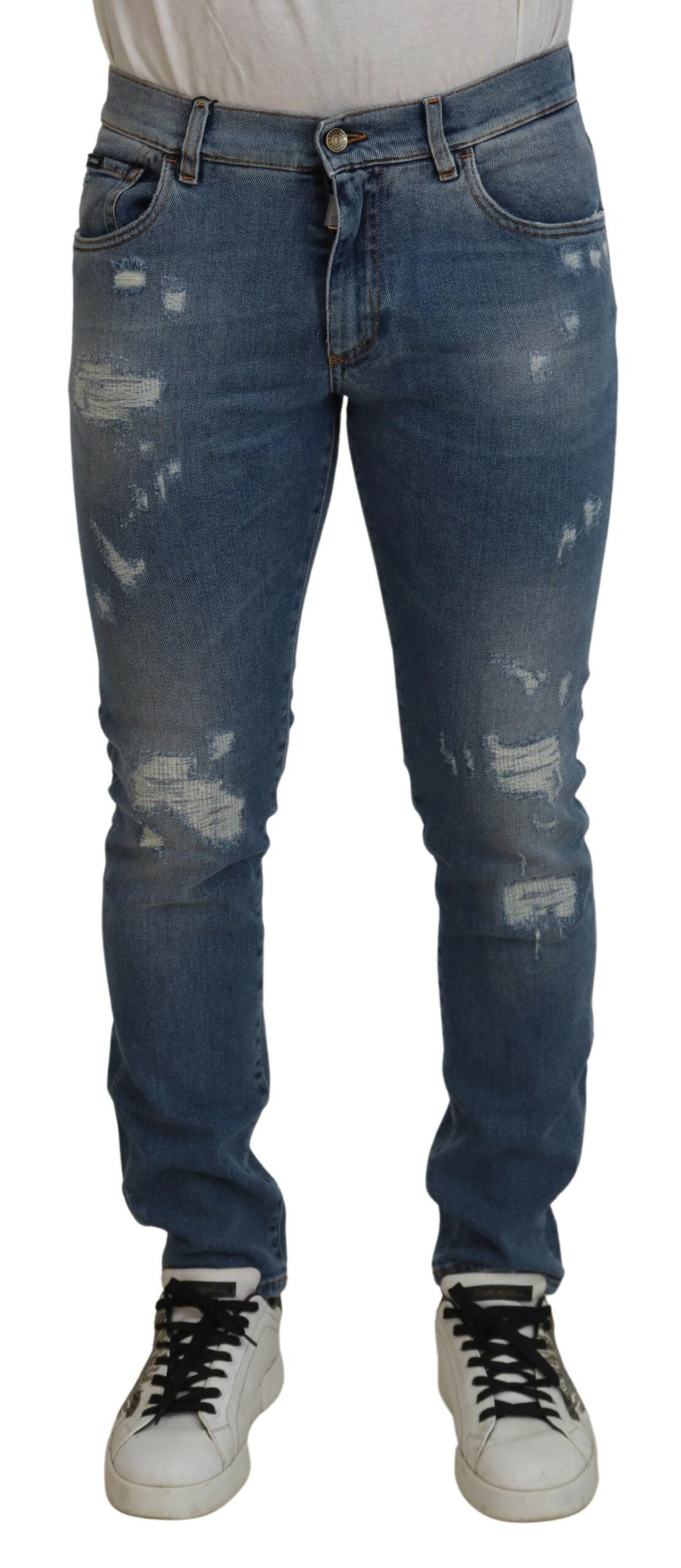 Discover the epitome of Italian craftsmanship with these Chic Slim Fit Italian Denim Jeans. Perfectly tailored by the renowned Dolce & Gabbana, these jeans are more than just a staple; they’re a statement of style and comfort. The sleek blue wash and slim fit design offer a modern edge to your wardrobe, ensuring you stand out with an aura of sophistication. Complete with a button and zip fly closure and subtle logo details, these jeans are a true emblem of luxury fashion, meticulously made in Italy.