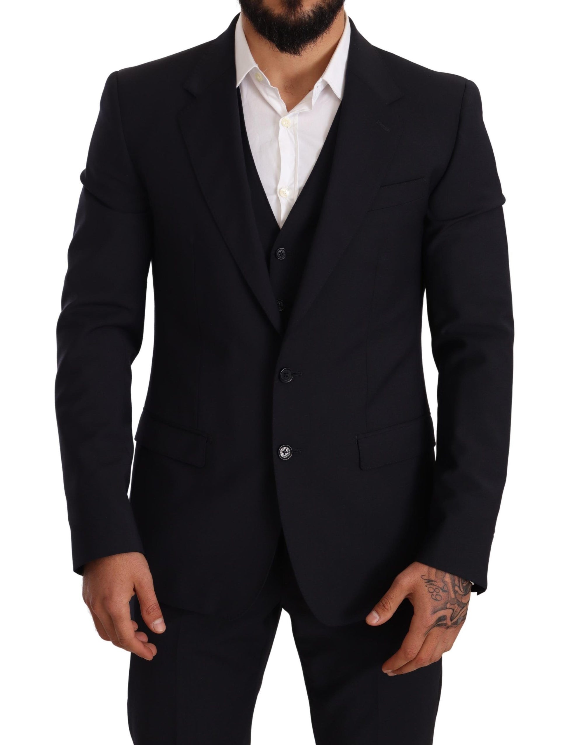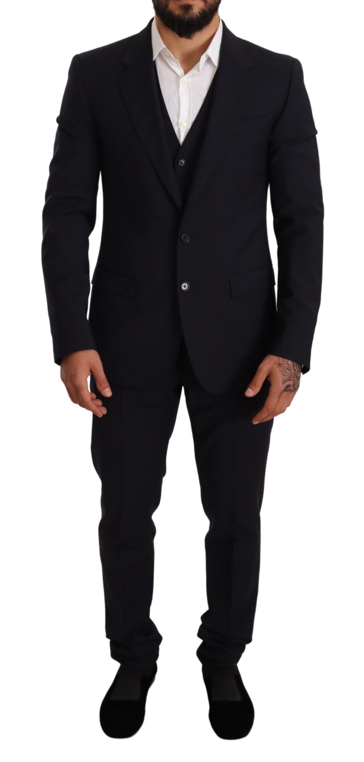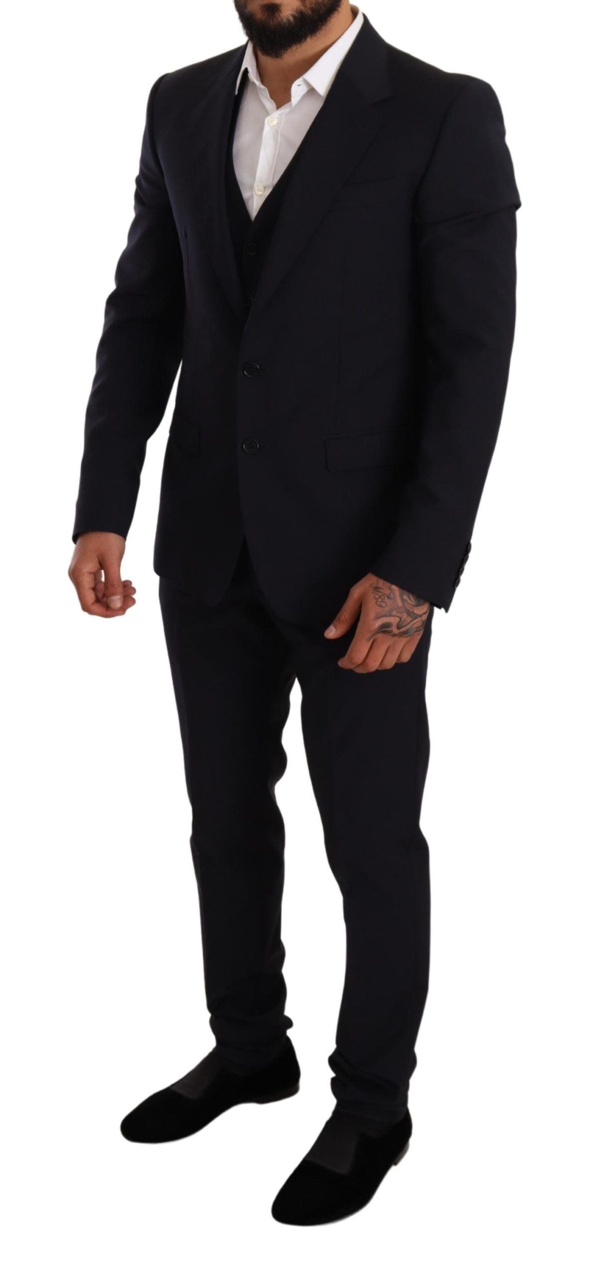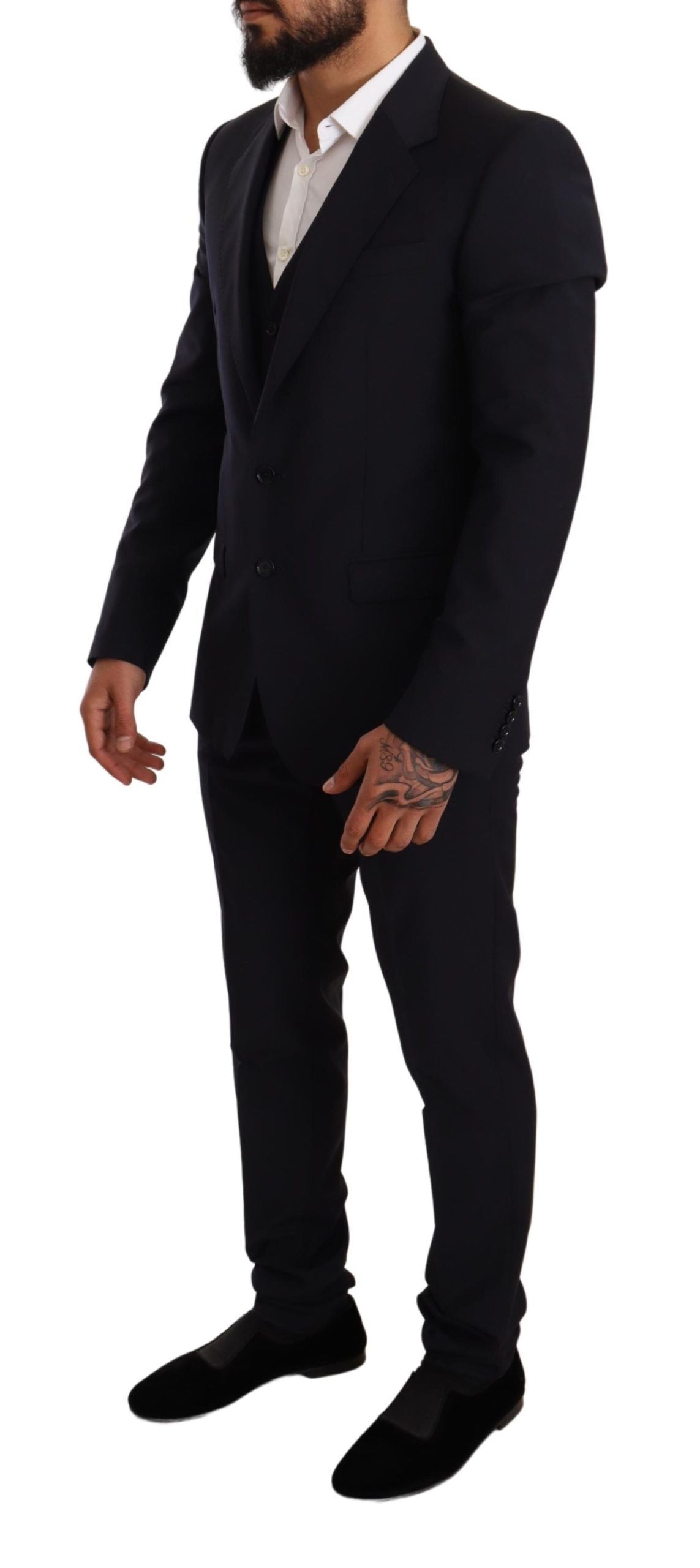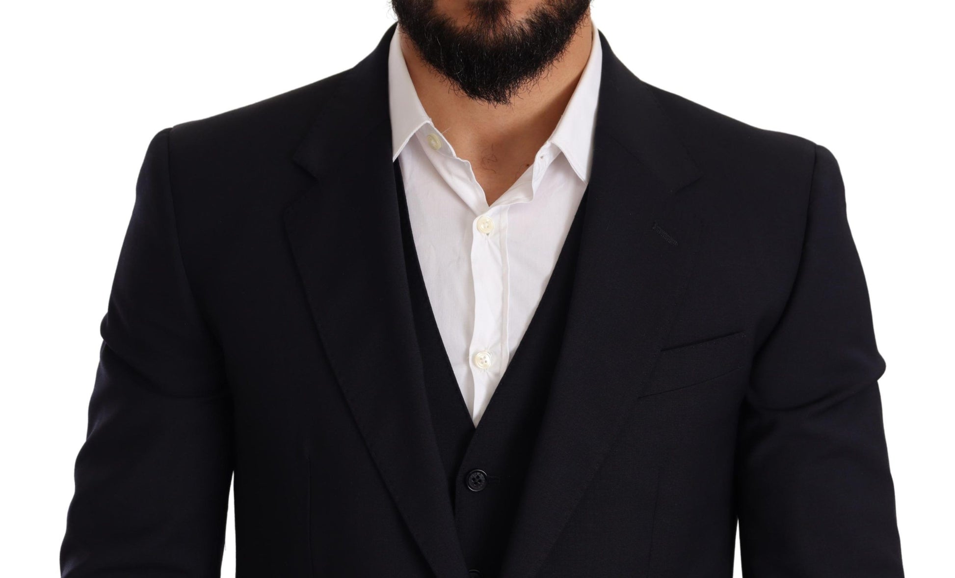 Elegant Dark Blue Three Piece Wool Blend Suit