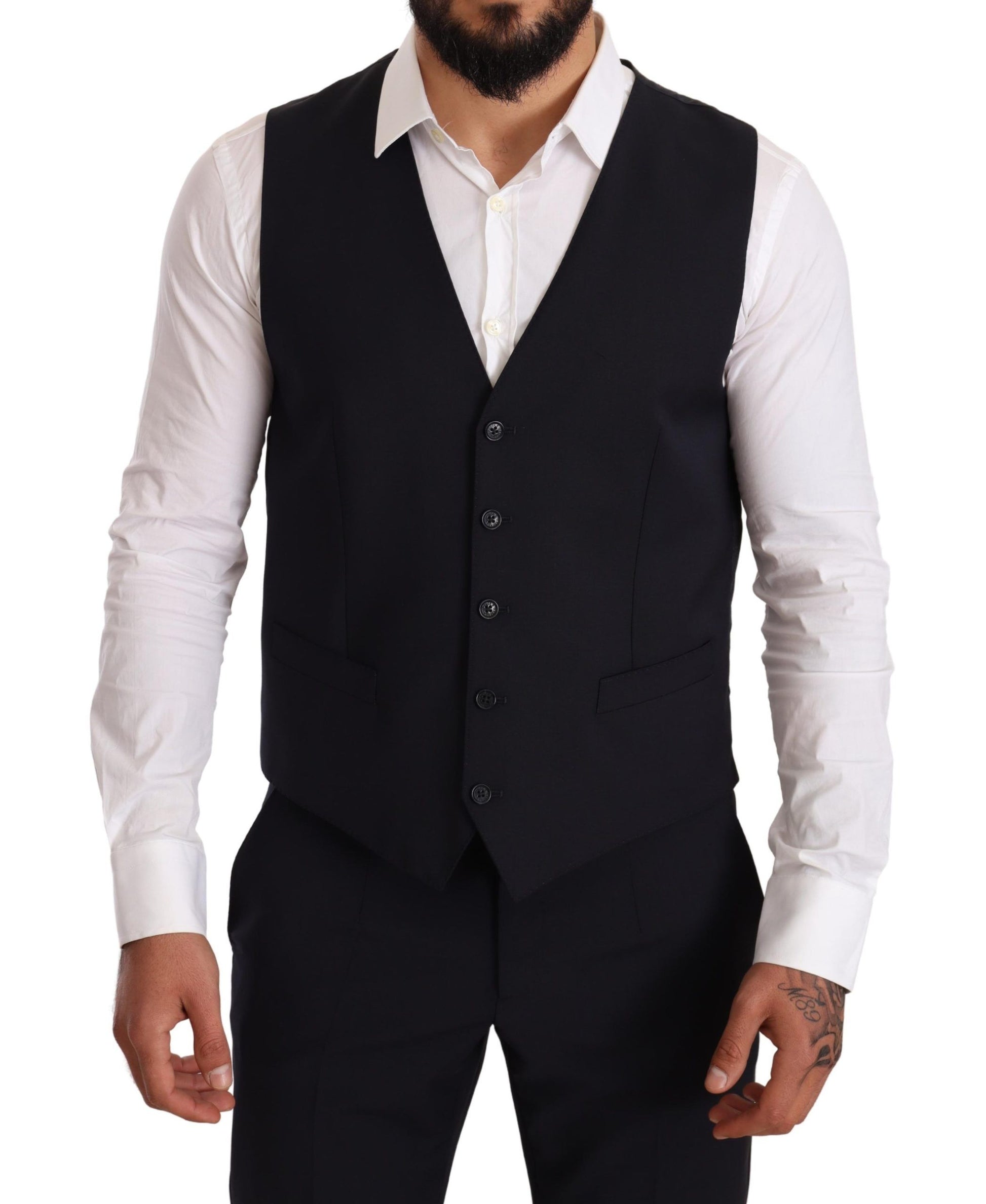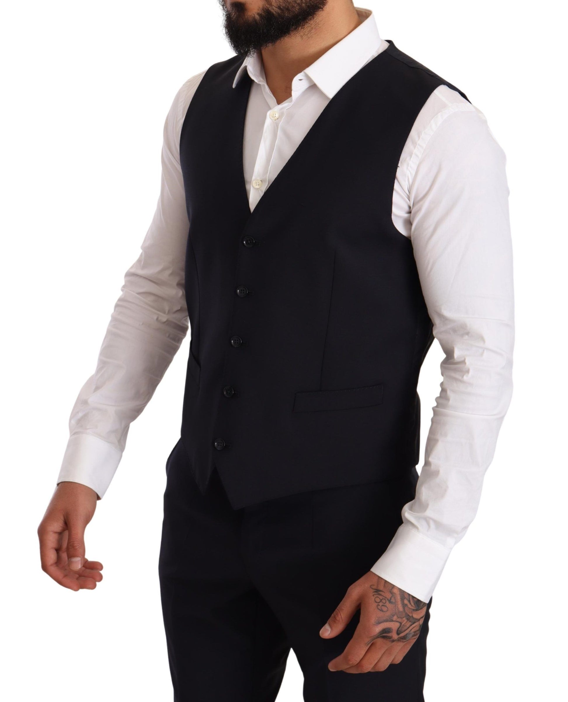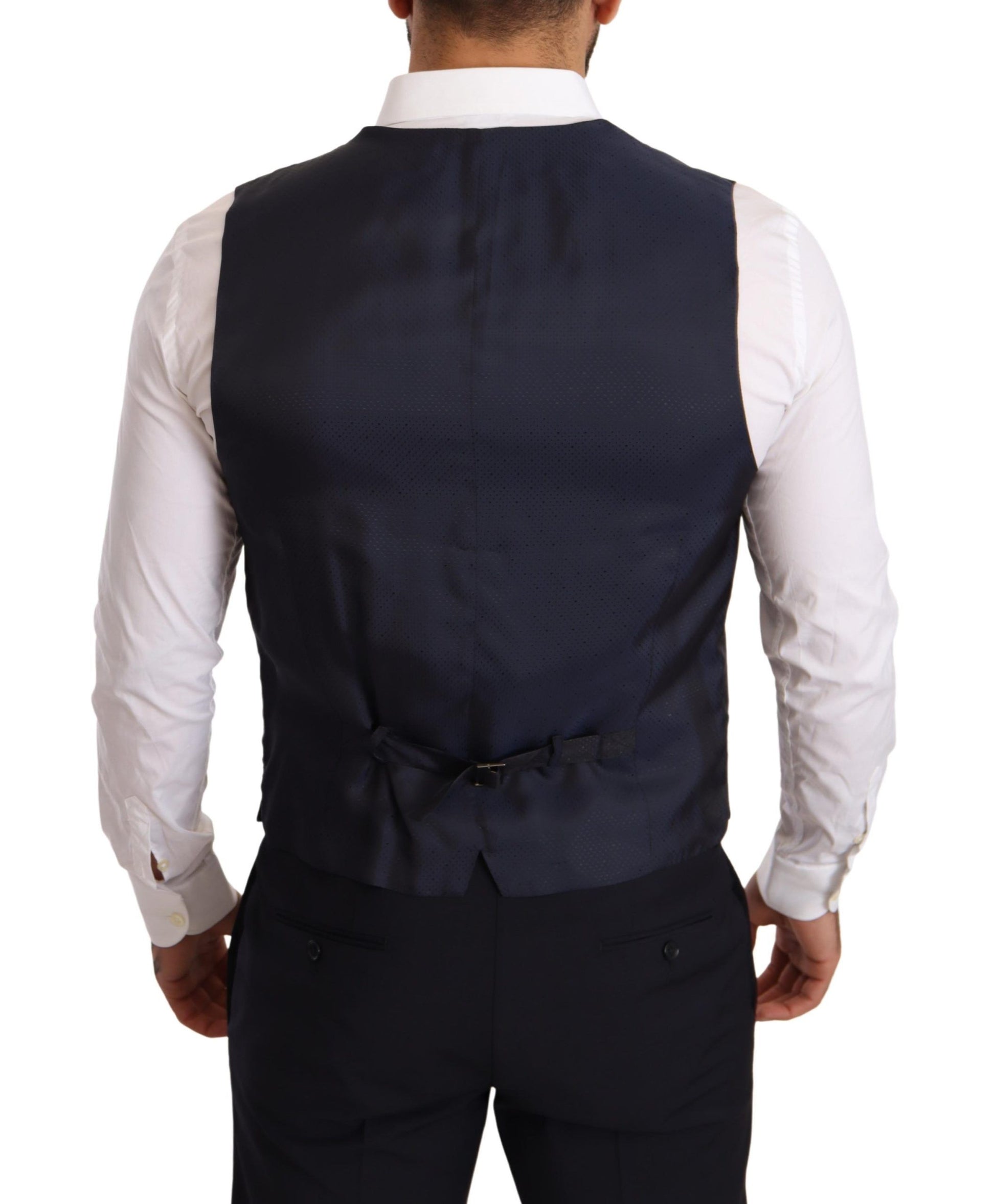 Experience the pinnacle of sartorial sophistication with our stunning, 100% authentic three-piece suit from Dolce & Gabbana’s MARTINI collection. Perfectly tailored to embody the sleek Italian style, this dark blue ensemble includes a sharply cut blazer, a coordinated vest, and perfectly fitted trousers that define contemporary elegance. Imbued with the label’s commitment to luxury and attention to detail, this suit is a testament to the very best in high craftsmanship.
