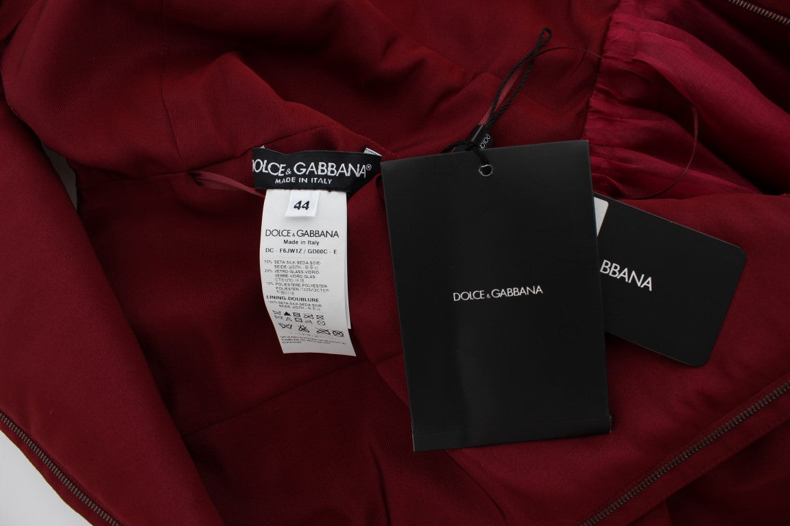 Indulge in the epitome of luxury with this exquisite Dolce & Gabbana bordeaux silk gown, adorned with sparkling crystals and white pearls. Perfect for the most glamorous occasions, this full-length dress exudes sophistication and timeless elegance, crafted by the finest Italian artisans. With a sleek back zipper and sumptuous silk lining, it’s a garment that promises to make a statement.