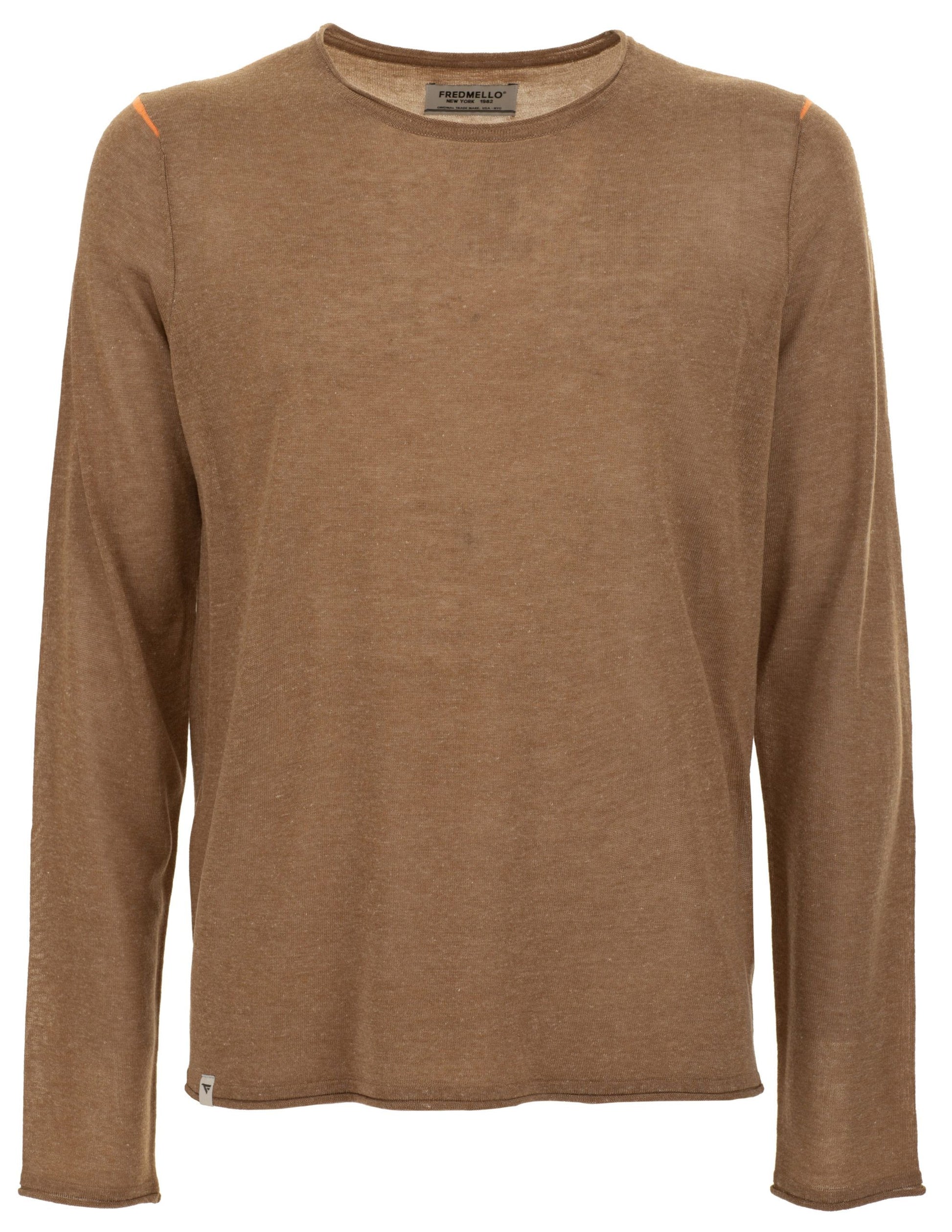 Experience cozy elegance with this chic brown crewneck sweater, expertly crafted in a luxurious blend of acrylic and linen. Perfect for a sophisticated yet comfortable look, it embodies style and warmth, making it an essential addition to the modern man’s wardrobe.