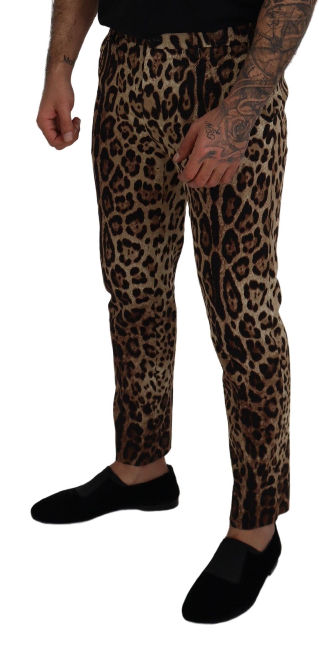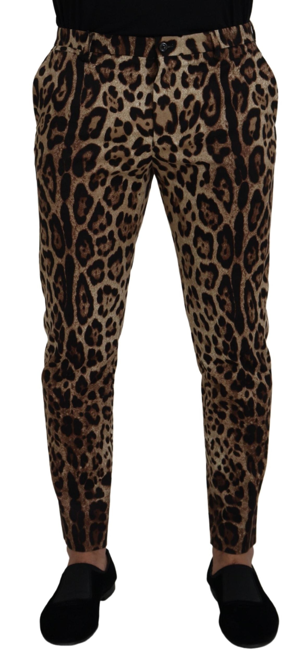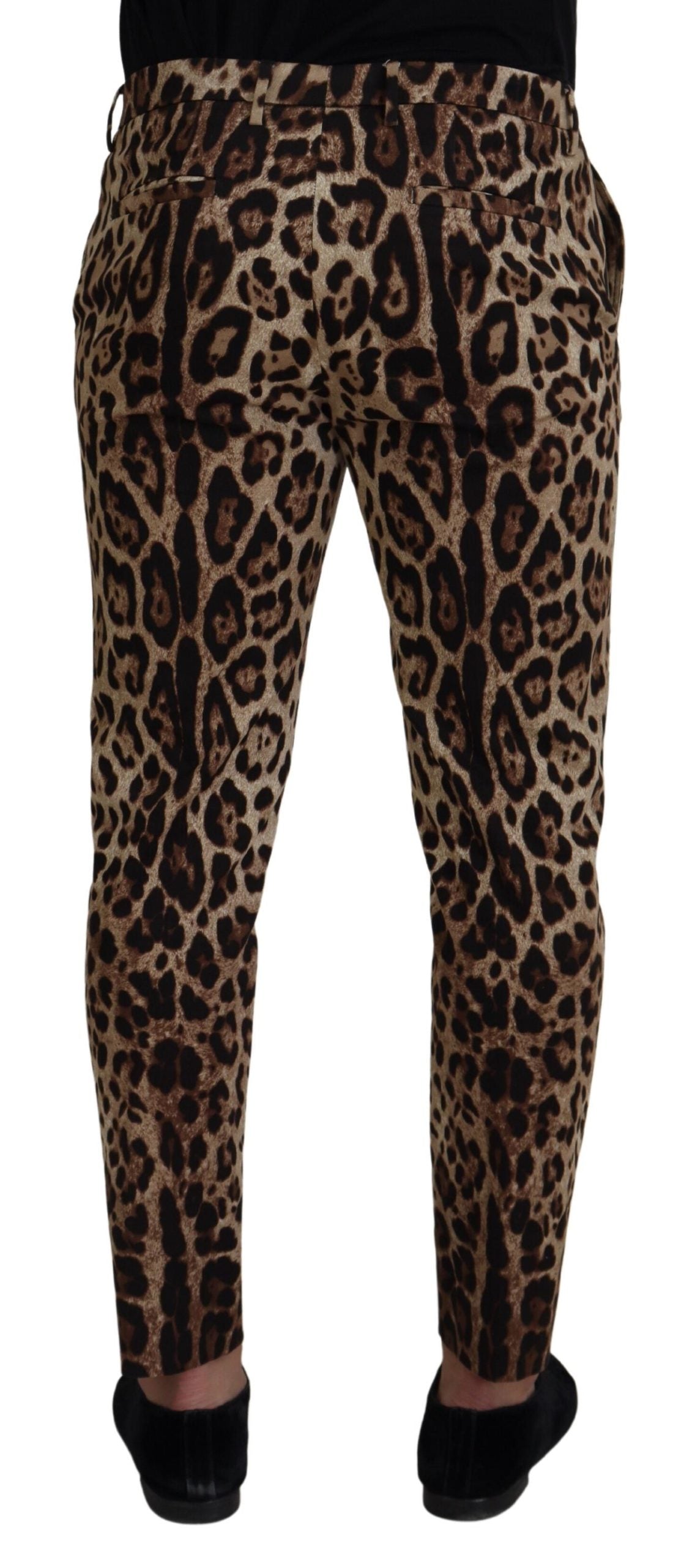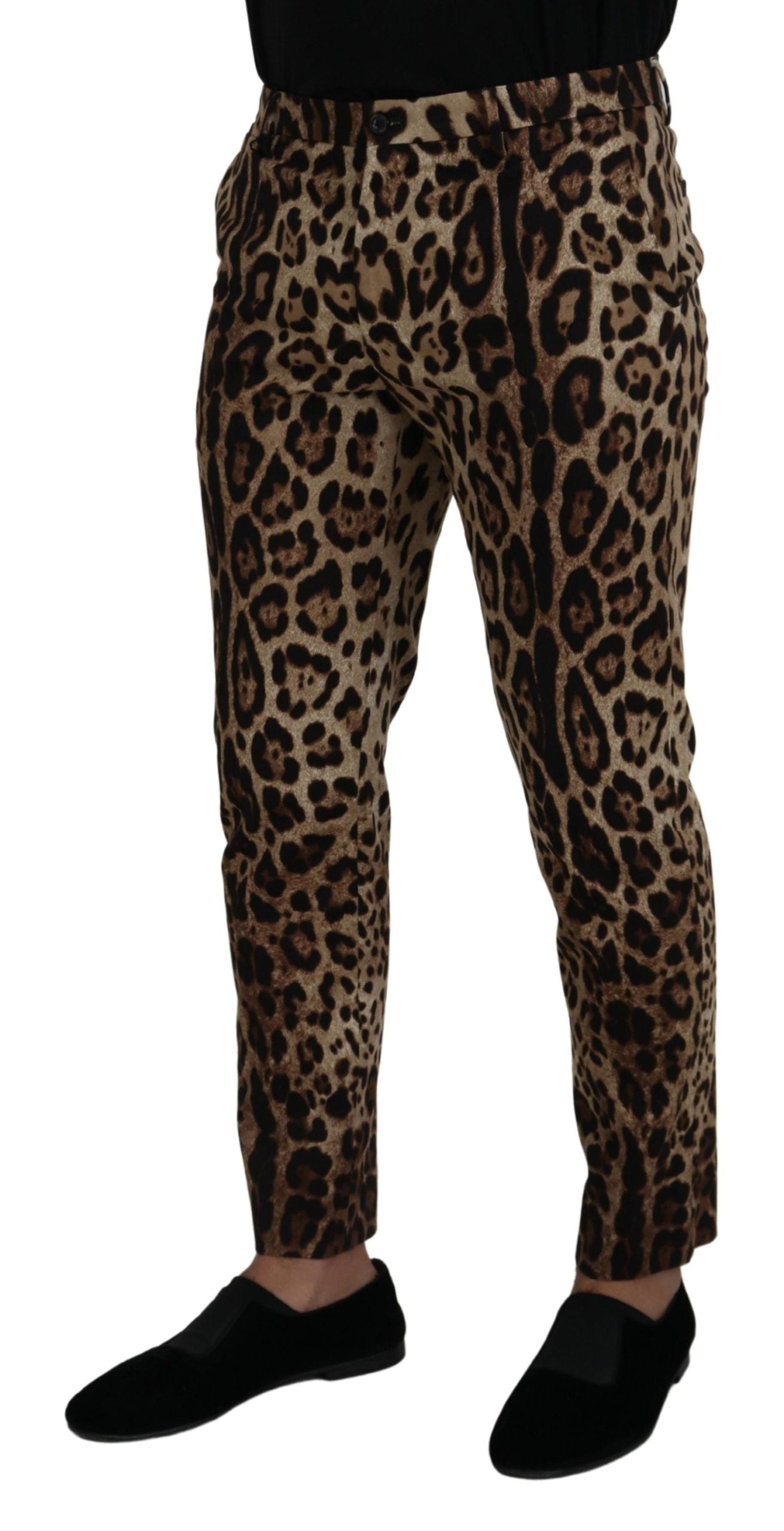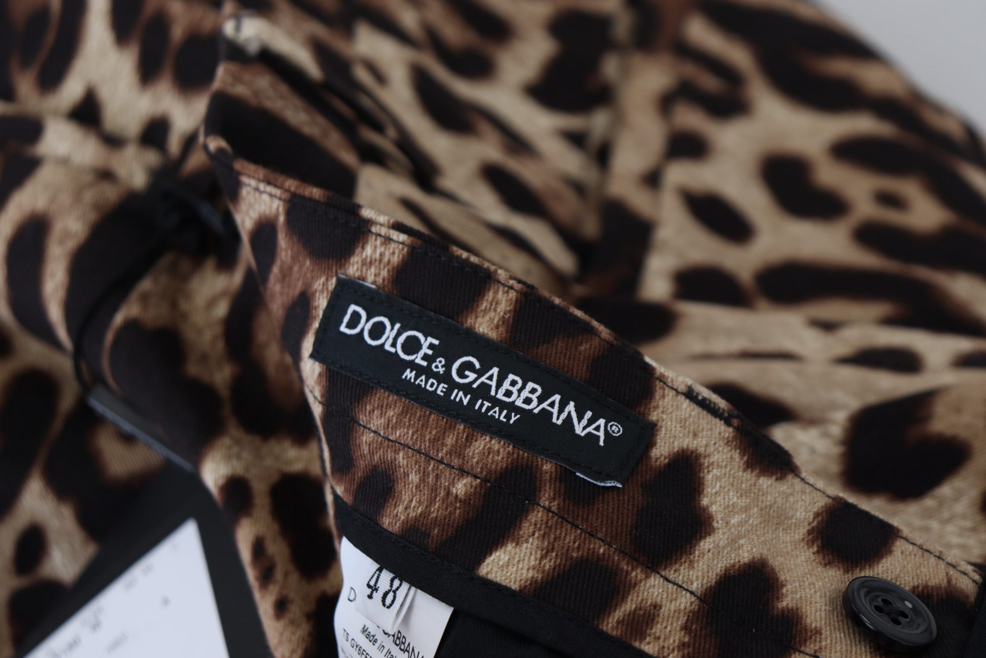 Indulge in the high-fashion elegance of these stunning trousers from Dolce & Gabbana. These pants boast an eye-catching leopard print, ensuring you make a bold statement wherever you go. Not only do they exude style, but the blend of cotton and elastane ensures both comfort and a flattering fit. Perfectly crafted in Italy, these trousers are a must-have for those who appreciate luxury and statement-making pieces.