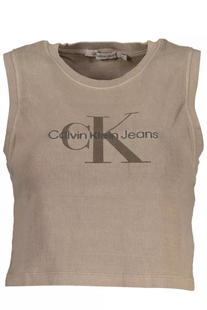 Experience unrivaled elegance with our sleeveless Calvin Klein top, perfect for adding a touch of sophistication to any ensemble. Designed with a sleek brown hue, this top features an eye-catching print and intricate embroidery complete with the iconic Calvin Klein logo. Crafted from a comfortable blend of 94% cotton and 6% elastane, it promises a snug fit with just enough stretch.