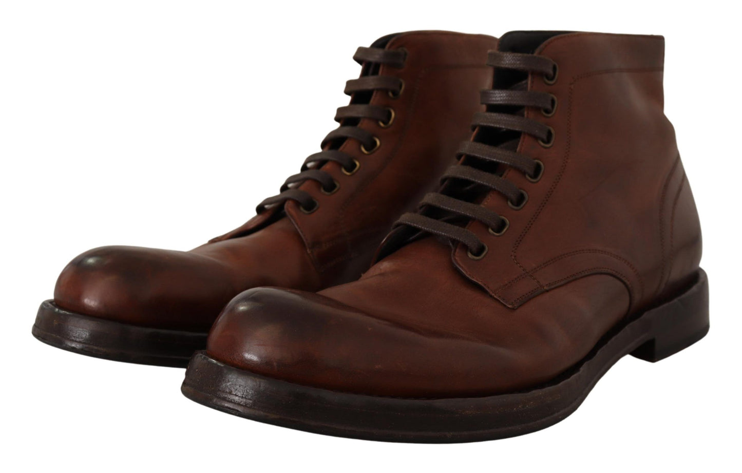 Step out in style with these luxurious ankle boots, a perfect blend of elegance and craftsmanship. Designed by the world-renowned fashion house, Dolce & Gabbana, these boots are more than just footwear; they’re a fashion statement. With an attention-grabbing brown leather finish and a durable rubber sole, they epitomize both style and practicality. Make a lasting impression with these Italian-made masterpieces, adorned with the subtle yet iconic logo details.