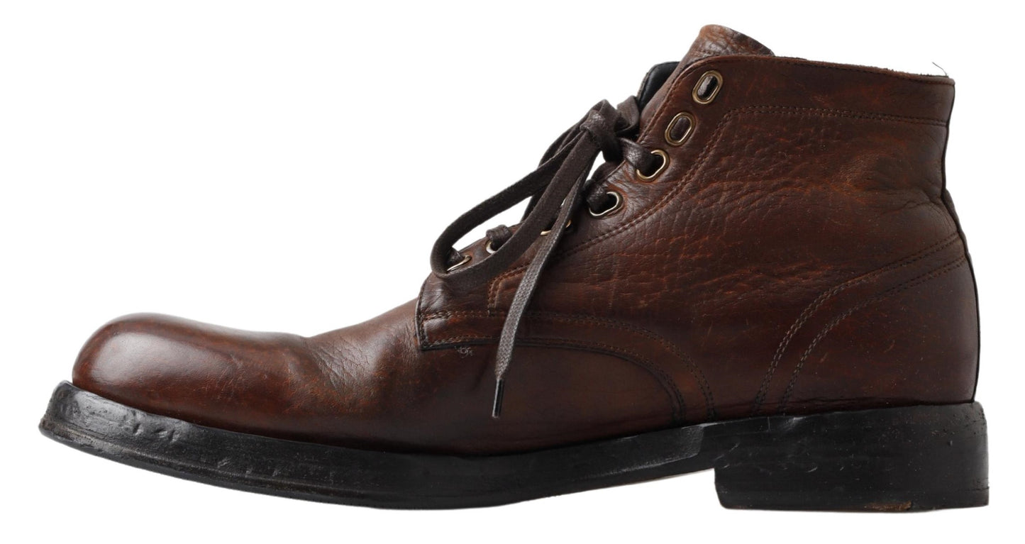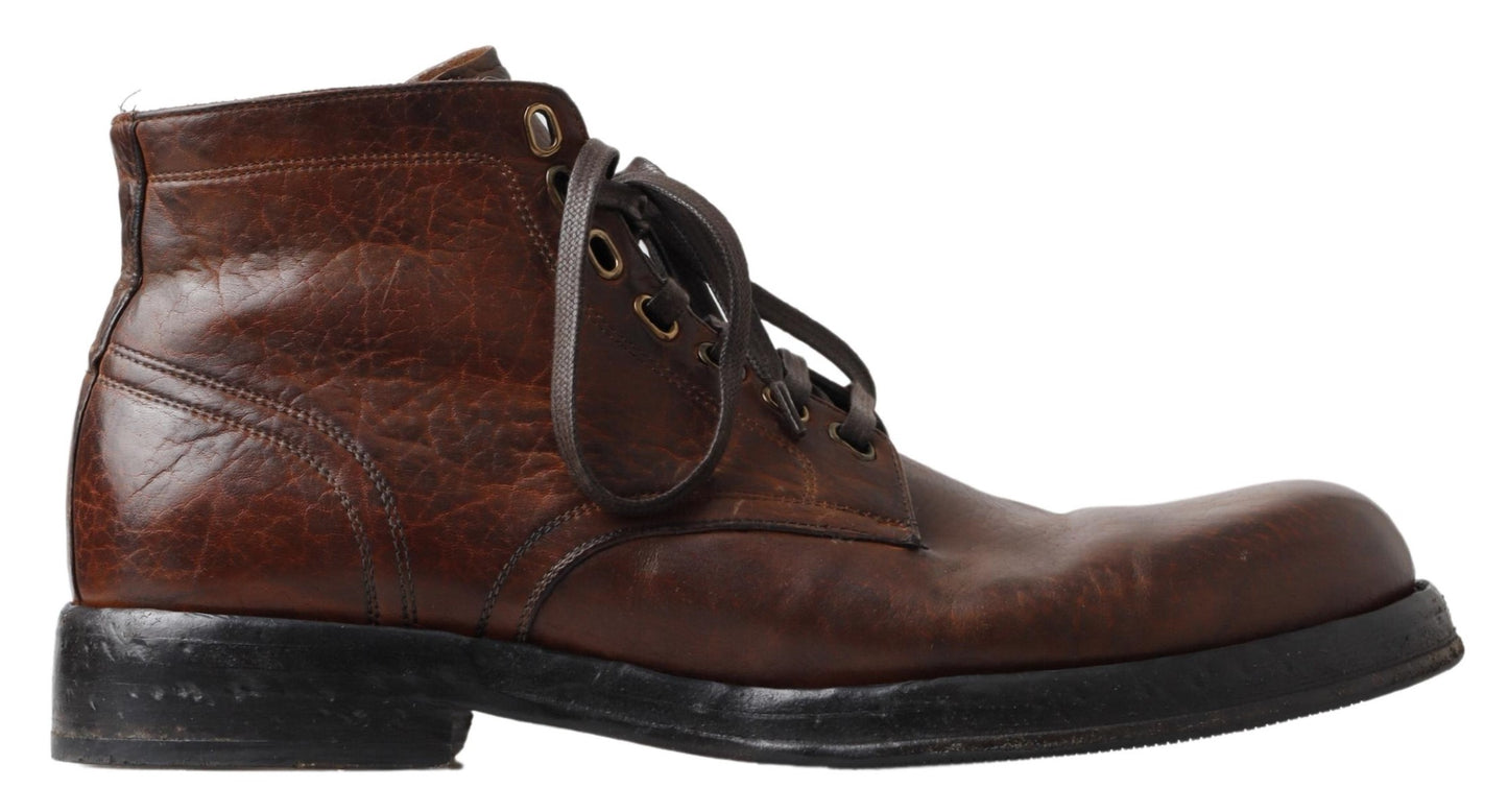 Step into luxury with these exquisite Dolce & Gabbana men’s boots, perfect for adding a touch of elegance to any outfit. These boots are brand new with tags, ensuring top quality and authenticity. Crafted with high craftsmanship in Italy, they feature a stylish lace-up design ideal for the fashion-conscious gentleman. The rich brown color complements an array of styles, while the durable rubber sole offers comfort and longevity.