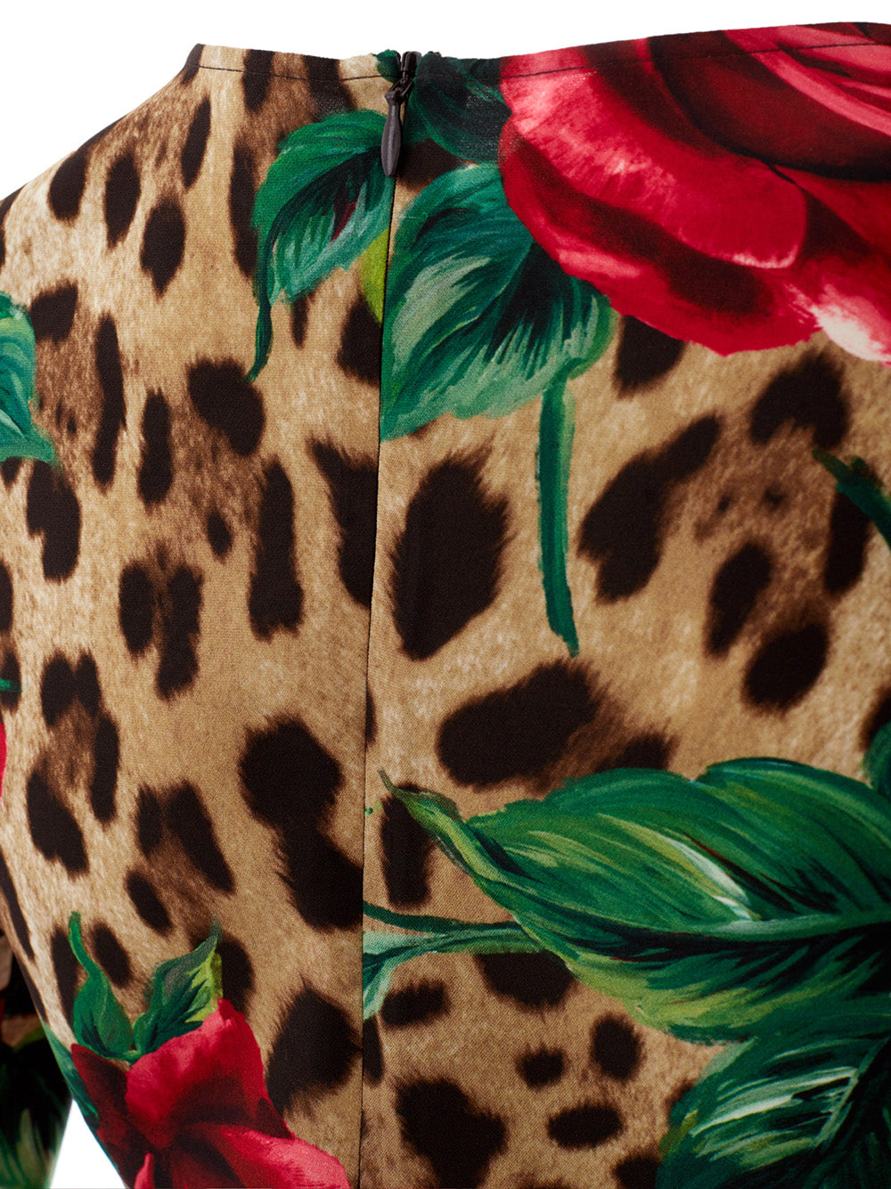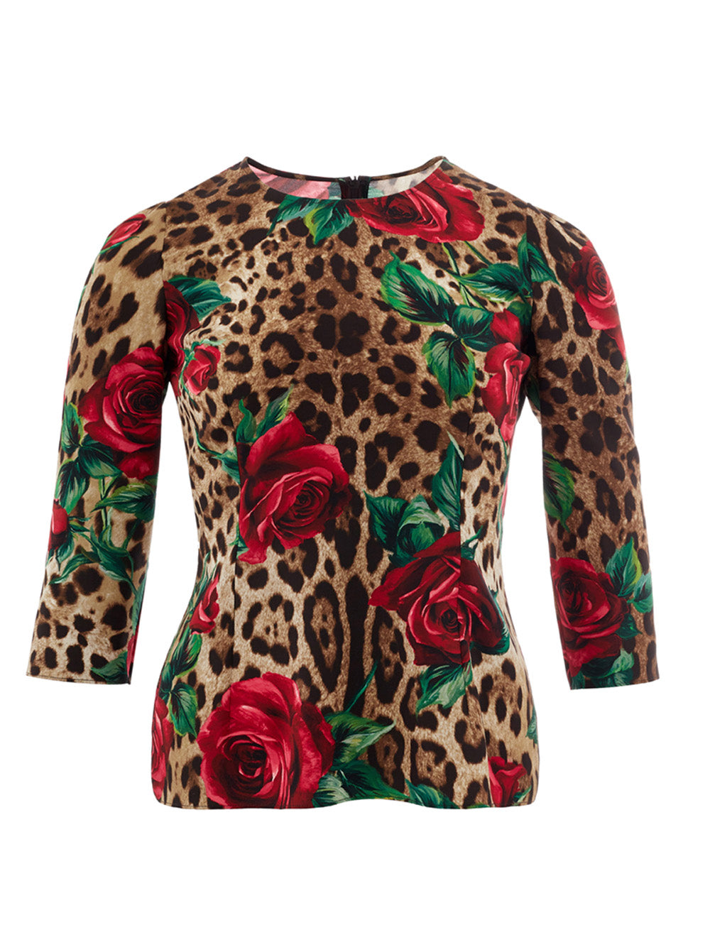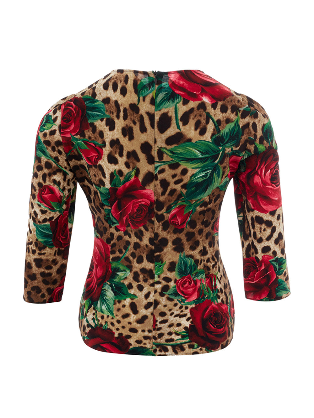 Indulge in the epitome of Italian luxury with this exquisite Dolce & Gabbana top. Accentuating timeless elegance, the top features the brand’s iconic leopard print, tastefully combined with striking red roses for a bold yet sophisticated look. Perfect for creating a statement outfit, this piece is crafted from premium silk with a hint of elastane, ensuring both comfort and unparalleled style. With its round neck, long sleeves, and discreet back zip closure, this top seamlessly marries fashion with functionality.