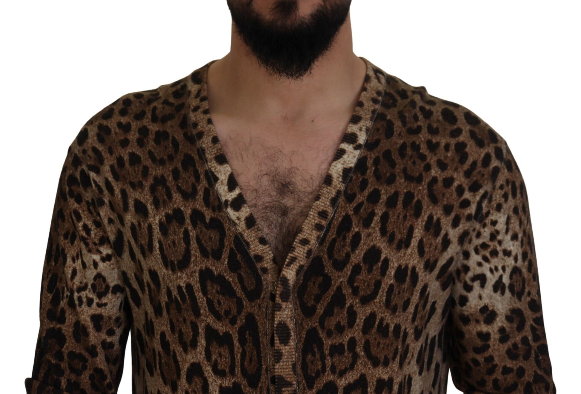Indulge in the epitome of luxury with this stunning cardigan sweater by Dolce & Gabbana. Crafted from the finest 100% virgin wool, this exquisite garment is guaranteed to add a touch of Italian elegance to your wardrobe. Featuring a bold leopard print in a rich brown hue, this cardigan impeccably fuses high fashion with comfort. Perfect for adding a statement layer to any outfit, make this piece a part of your collection today and experience unrivaled style and sophistication.