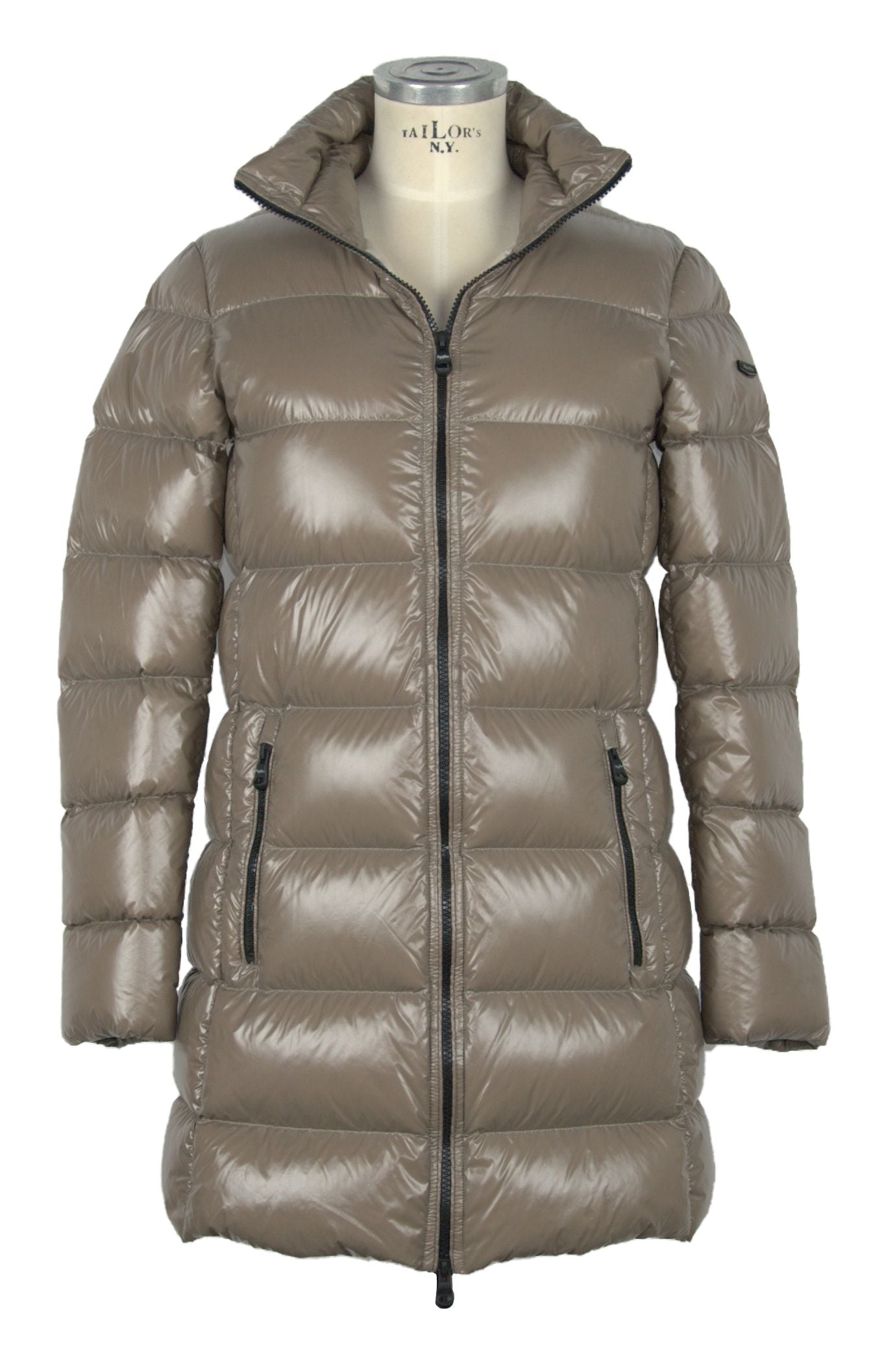 Embrace the chilly season in style with our Chic Long Down Jacket, a blend of everyday elegance and cozy winter warmth. Crafted from super-shiny nylon and filled with luxurious 90-10 down, this jacket isn’t just about comfort but also about making a sophisticated statement. Its water-repellent features, combined with wind resistance, make it an impeccable choice for combating the cold, whether you’re heading to the office or sauntering through the city. Accentuated with a refined front zip and a distinctive metal logo on the arm, it promises to uphold your style without compromising on functionality. Select from an array of feminine and vibrant colors to uplift your winter wardrobe!