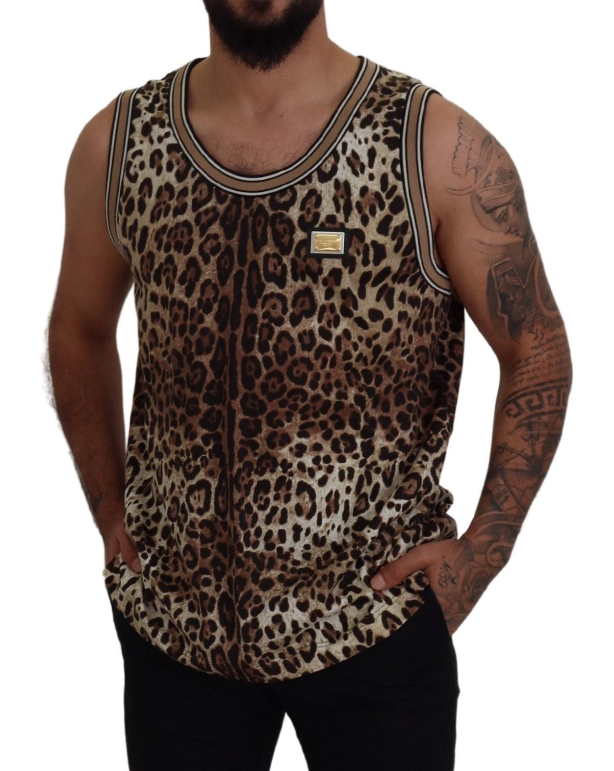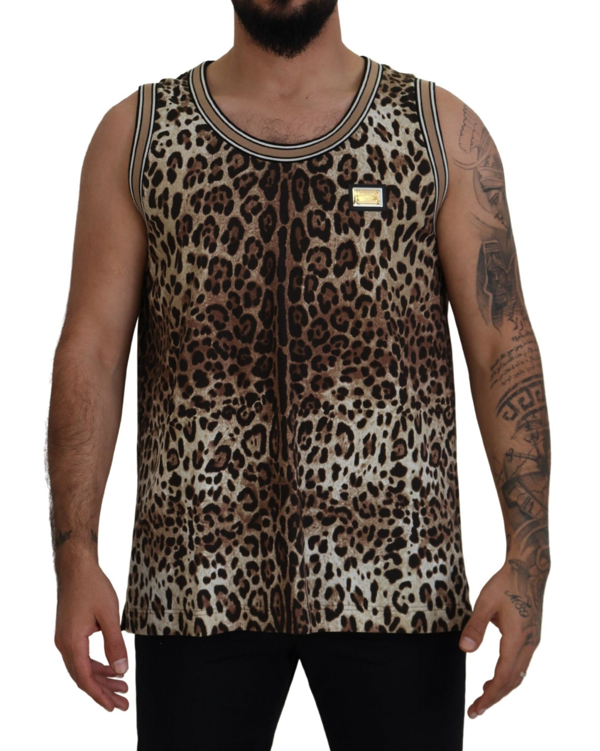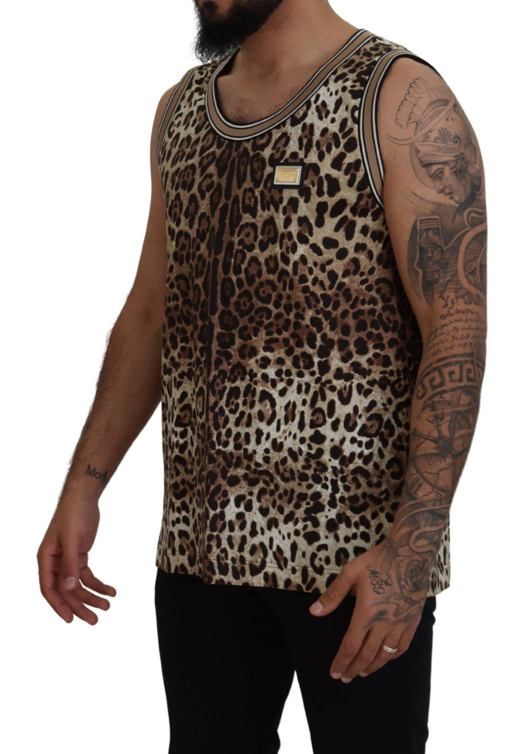 Indulge in the epitome of high-fashion with this stunning leopard print tank top t-shirt by Dolce & Gabbana. This sleeveless piece is not only a nod to the wild side of style but also a testament to luxury and comfort with its 100% cotton material. Perfect for a bold fashion statement, it’s been crafted with meticulous attention to detail in Italy. Feature this exquisite garment in your collection and flaunt the distinctive D&G logo with pride.