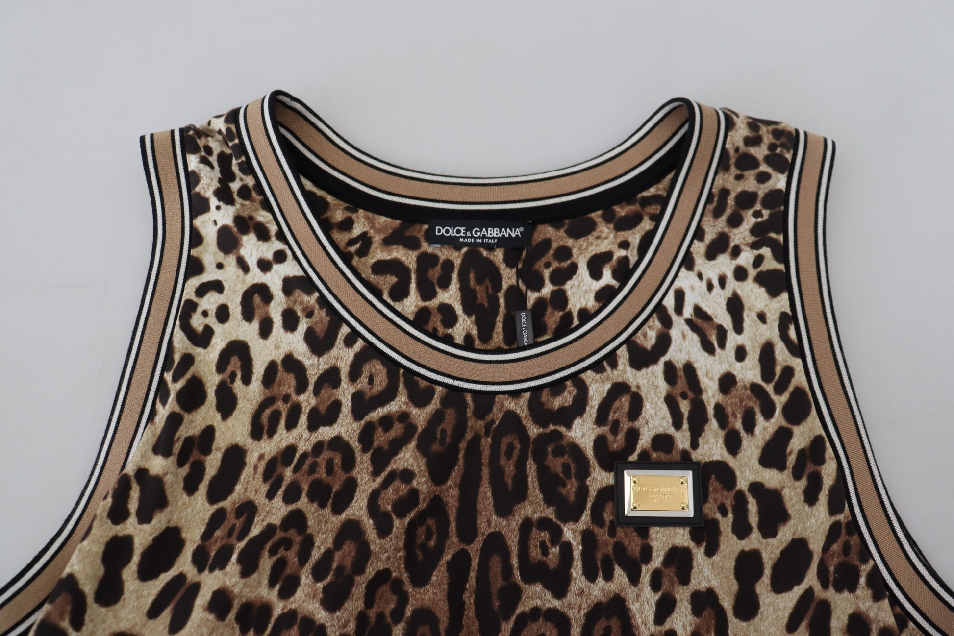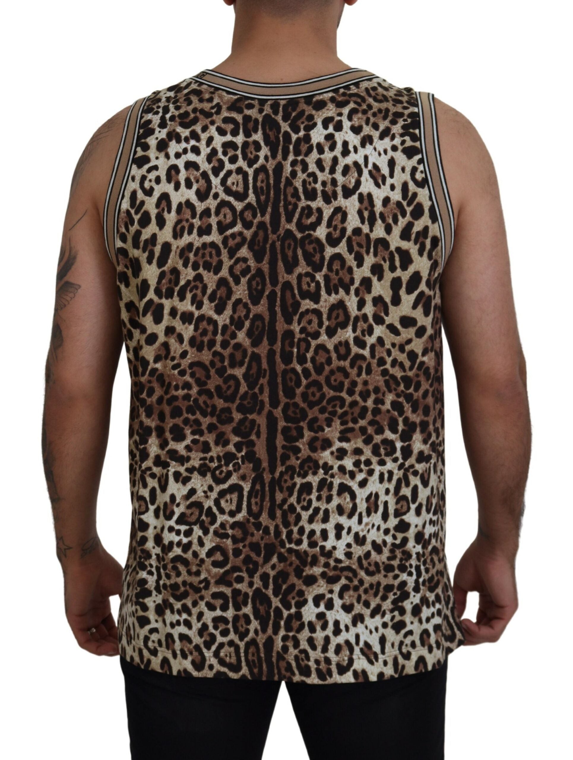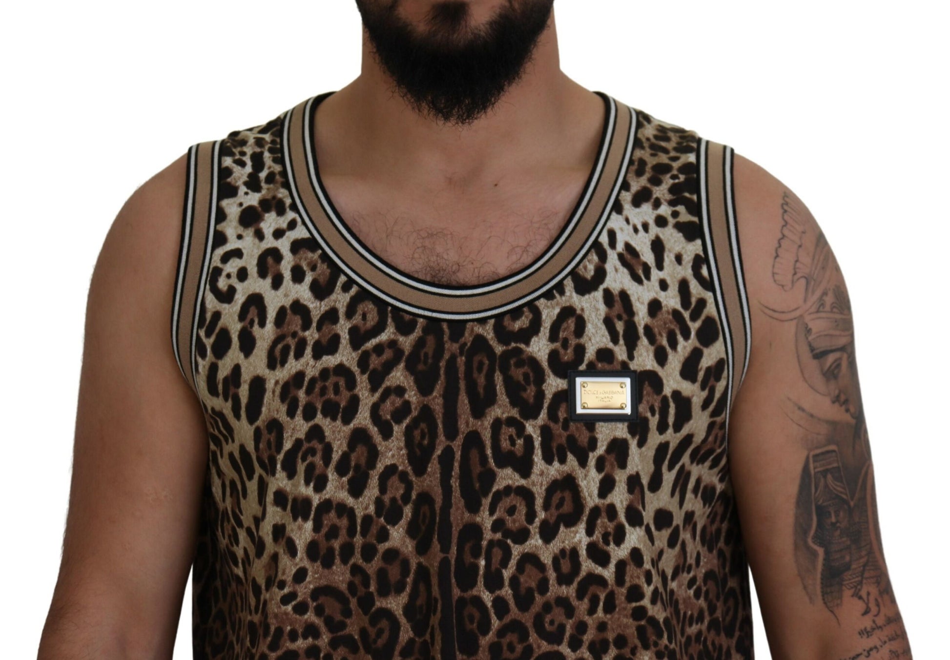 Indulge in the epitome of high-fashion with this stunning leopard print tank top t-shirt by Dolce & Gabbana. This sleeveless piece is not only a nod to the wild side of style but also a testament to luxury and comfort with its 100% cotton material. Perfect for a bold fashion statement, it’s been crafted with meticulous attention to detail in Italy. Feature this exquisite garment in your collection and flaunt the distinctive D&G logo with pride.