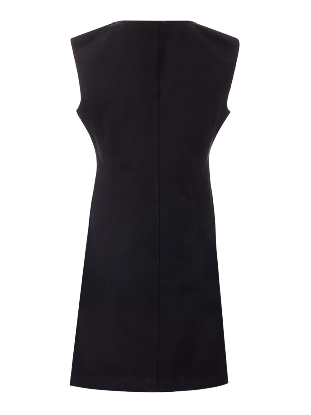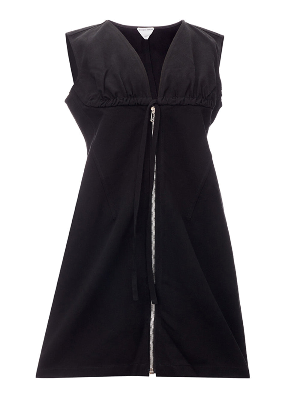 Discover elegance and sophistication with this stunning Bottega Veneta Sleeveless black dress. Crafted from a plush blend of materials for a comfortable regular fit, it features a sleek V-neck design and an adjustable strap on the front, perfect for a tailored look. Making a statement is effortless with the chic front zip closure and a flattering midi length that exudes timeless style.