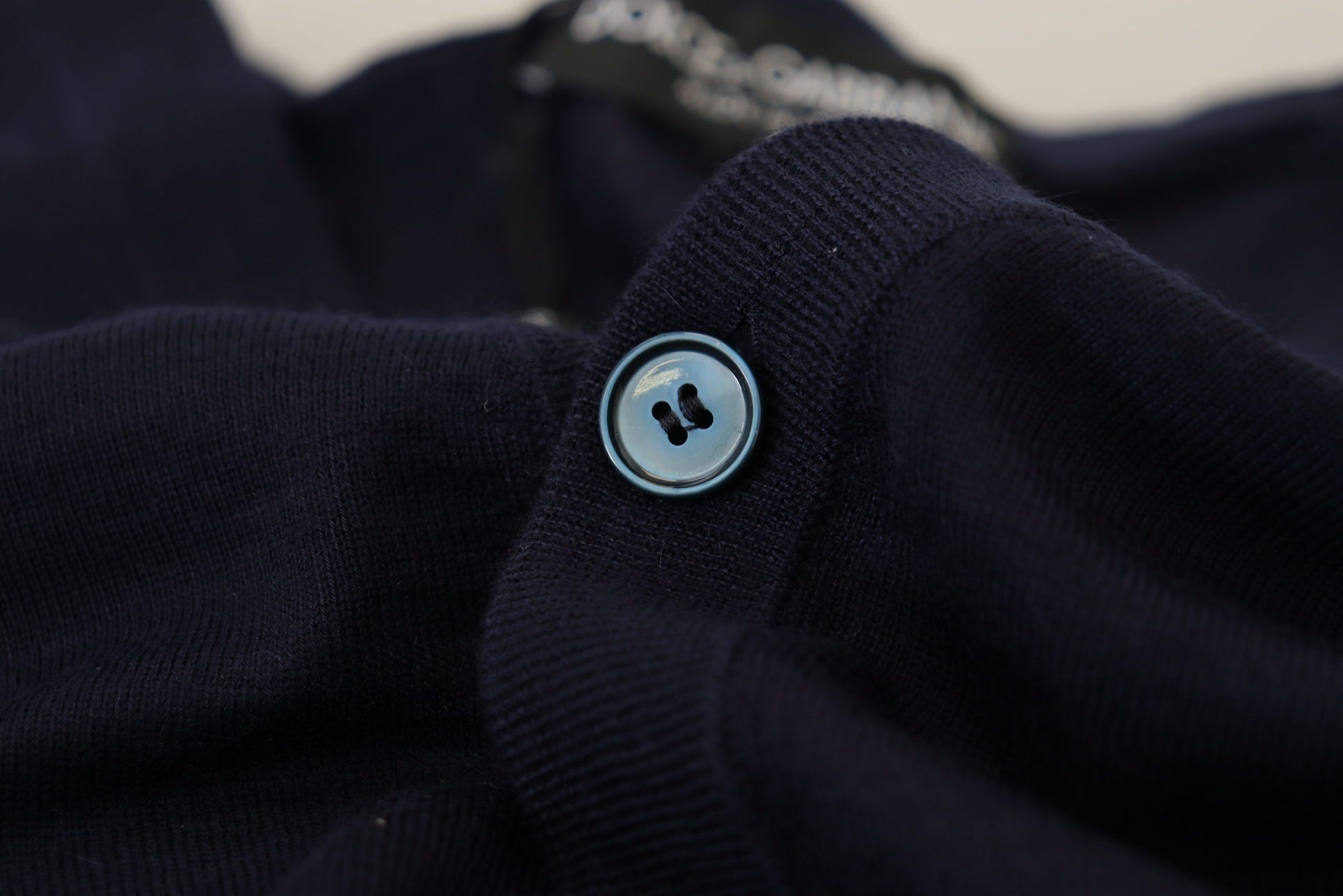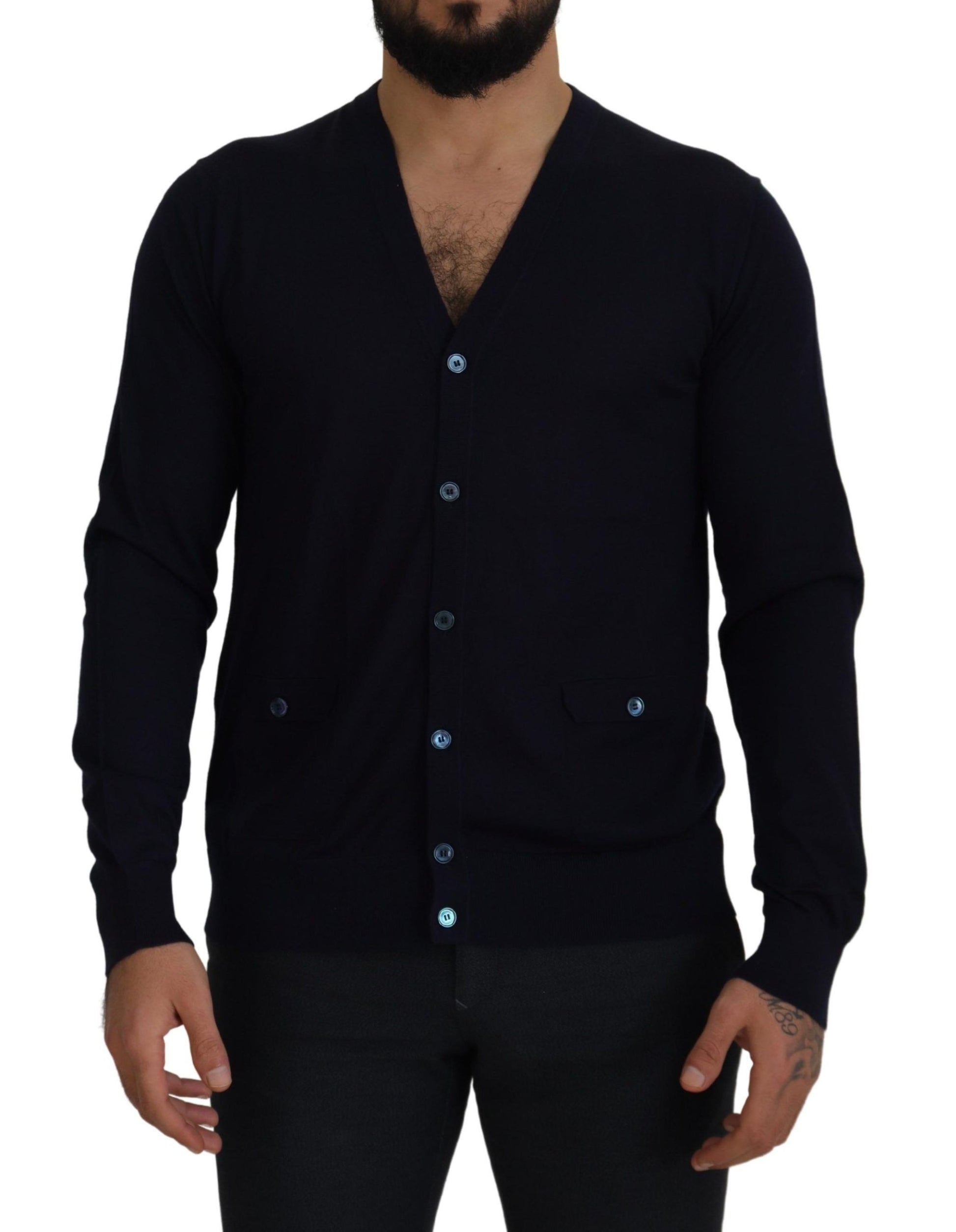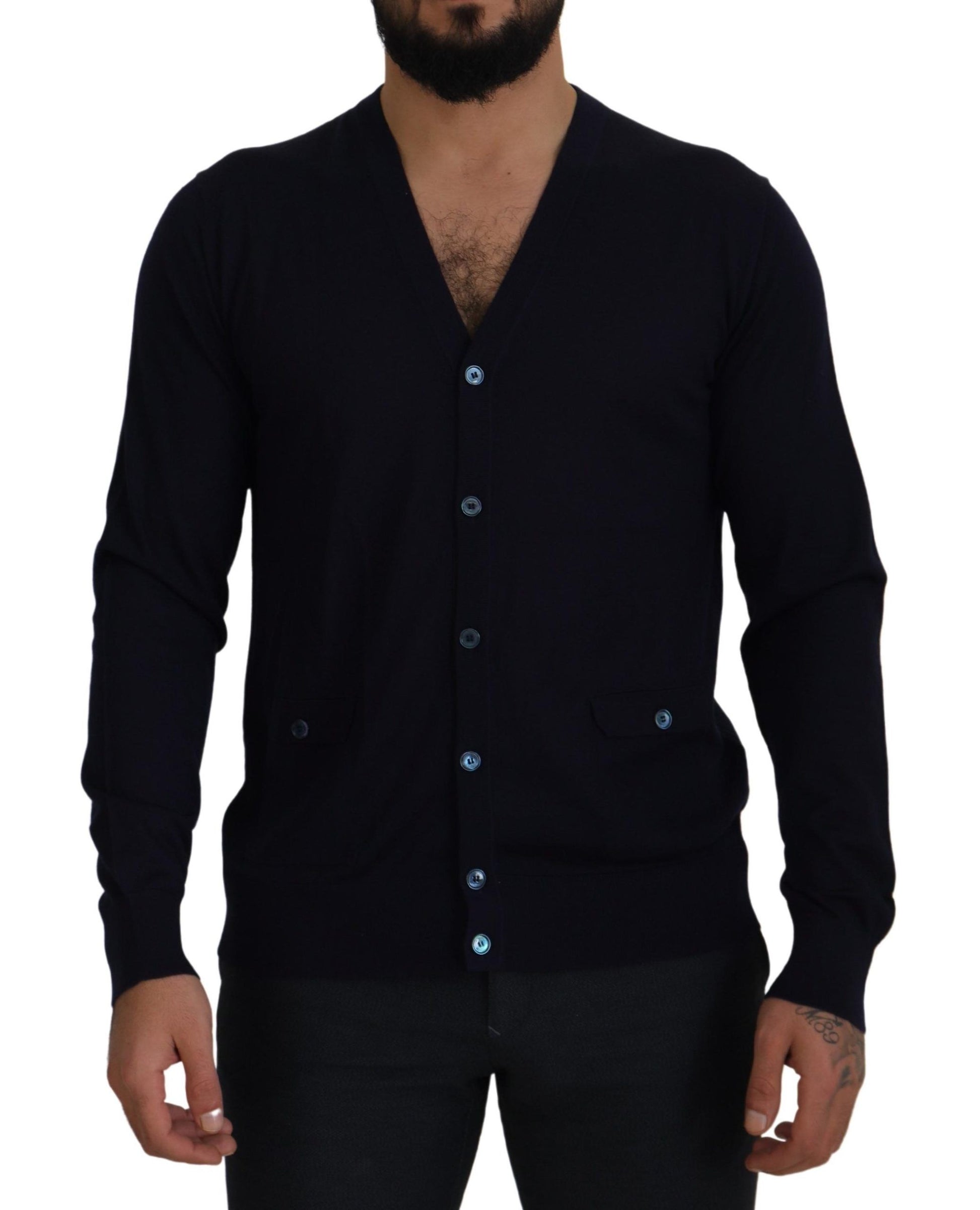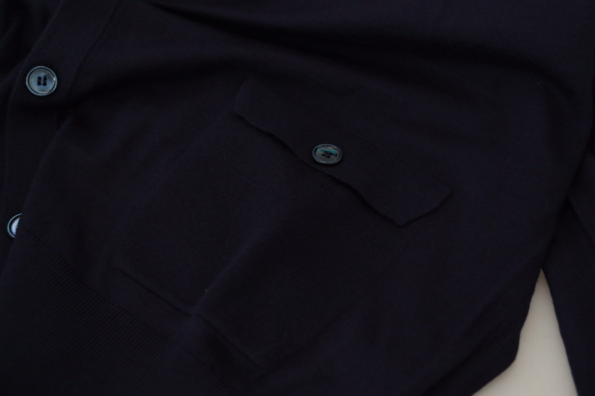 Indulge in the epitome of luxury with our stunning cardigan sweater, a testament to impeccable Italian craftsmanship. This 100% authentic Dolce & Gabbana piece exudes elegance with its deep blue hue and refined logo details. Tailored from sumptuously soft cashmere, it features a classic button closure, ensuring a seamless blend of comfort and style.