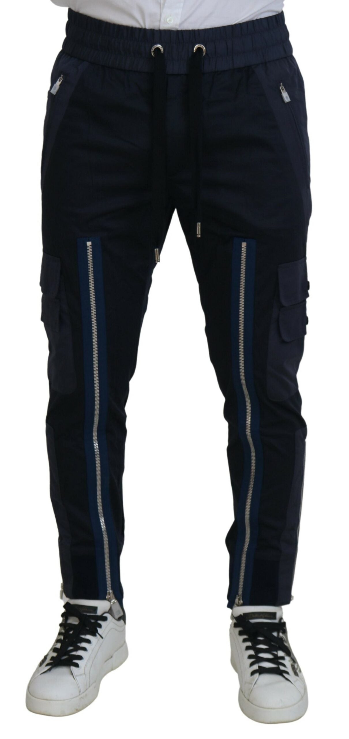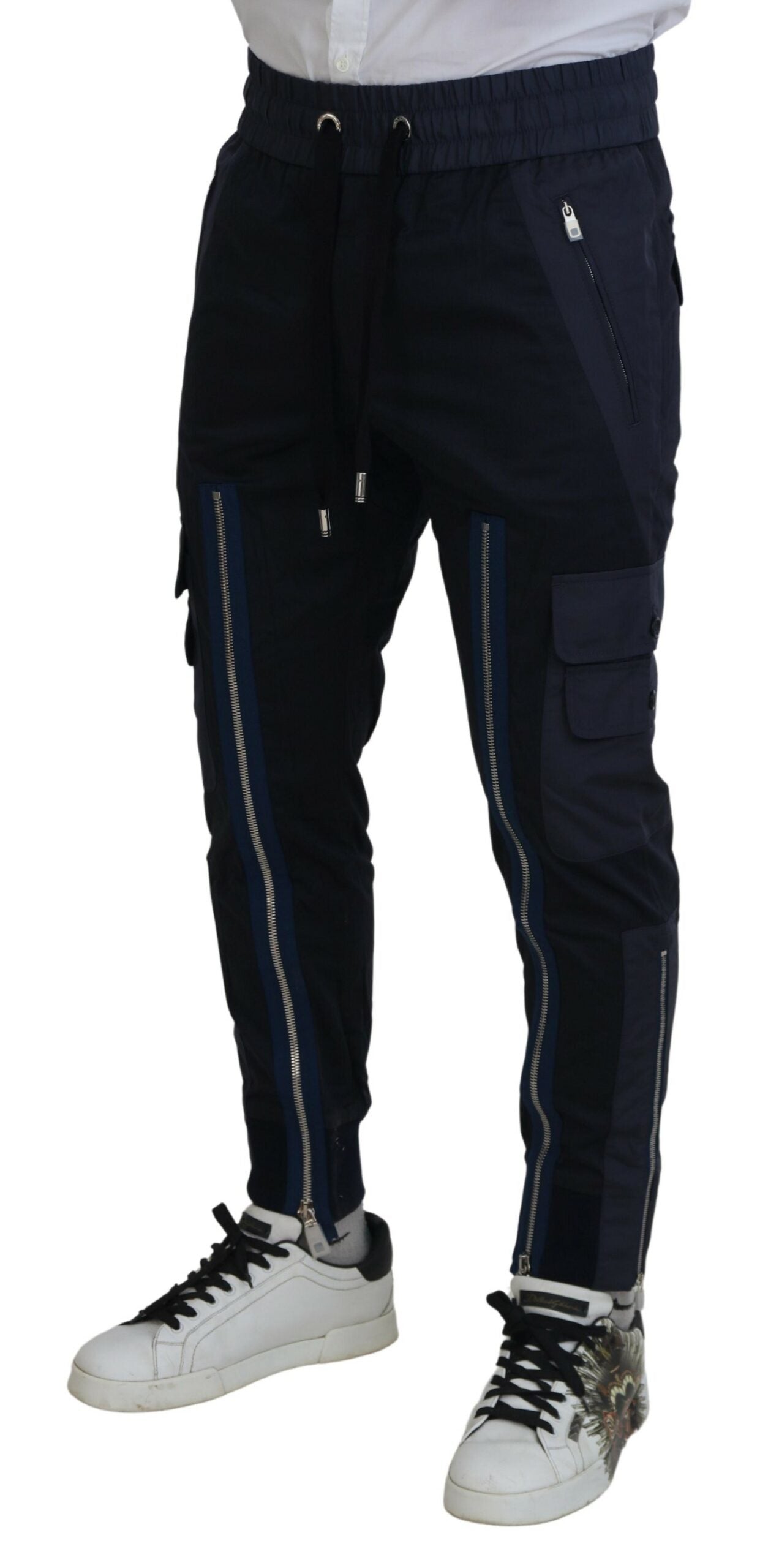 Step into luxury with these impeccably crafted jogger pants by Dolce & Gabbana. Perfect for the fashion-savvy individual, these dark blue joggers blend comfort with high-end style, straight from Dolce & Gabbana’s exclusive MainLine collection. Whether dressing up for an event or keeping it casual, these joggers are sure to elevate your wardrobe.