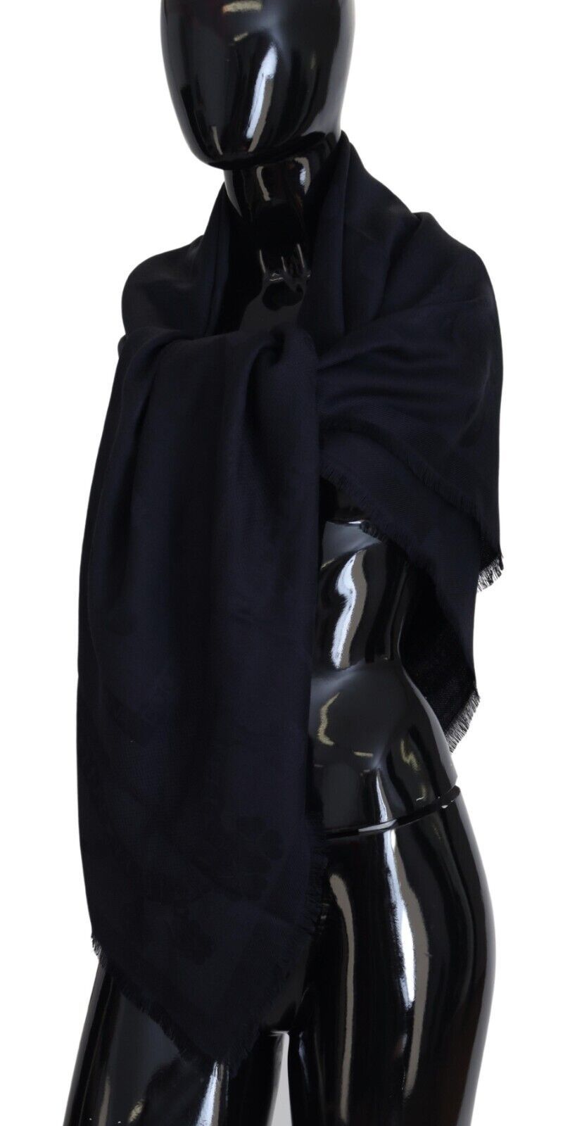 Discover the epitome of Italian luxury with this exquisite silk scarf, accented with delicate fringes for a touch of elegance. Perfect for adding a sophisticated layer to any ensemble, this luxurious accessory boasts the iconic craftsmanship of Dolce & Gabbana. Its rich dark blue hue complements an array of outfits, making it a versatile addition to your wardrobe.