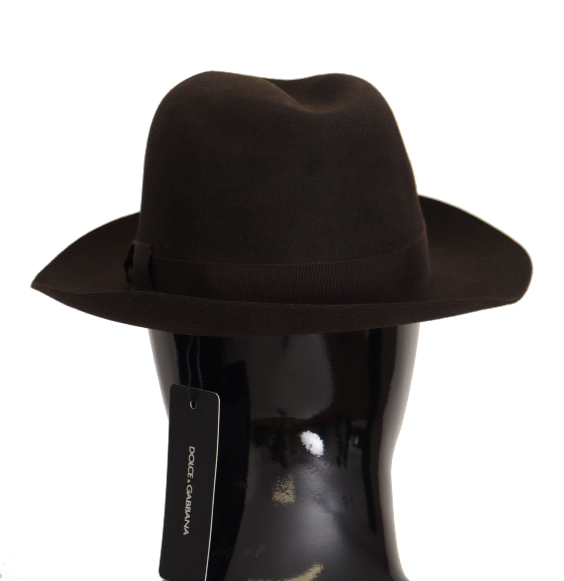 Experience timeless elegance with this 100% Authentic Fedora from the exclusive MainLine collection of Dolce & Gabbana. Crafted with the utmost care in Italy, this dark brown fedora hat promises not only to elevate your style but to become a treasured piece in your wardrobe. Its luxurious rabbit fur material and subtle logo details speak volumes of its exquisite craftsmanship and unparalleled quality.