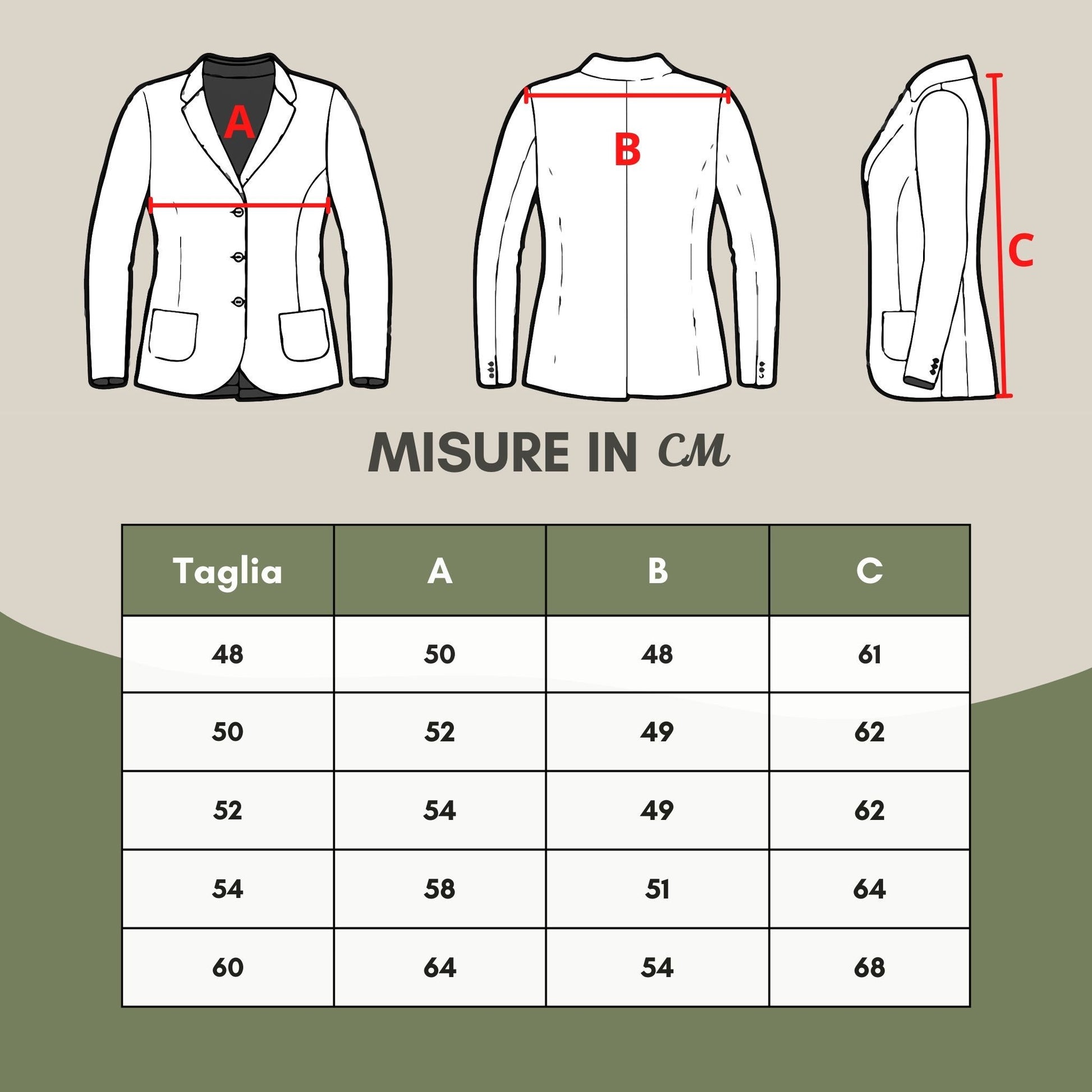 | Italian (IT) | 44 | 46 | 48 | 50 | 52 | 54 | 56 | 58 | 60 |