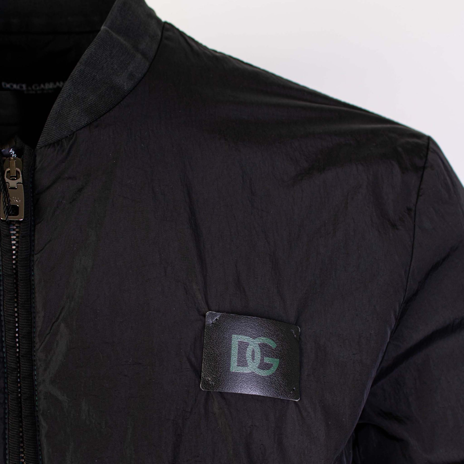 Step out in style with this sleek and sophisticated black bomber jacket, a stunning addition to any modern gentleman’s wardrobe. Crafted from high-quality polyamide for durability and comfort, this jacket is ideal for mid-season wear. It features a smooth front zip closure, convenient side pockets, and an elastic waistband for a snug fit. Adorned with a subtle logo patch for an extra touch of luxury, this jacket is the epitome of Dolce & Gabbana’s commitment to excellence and Italian craftsmanship.