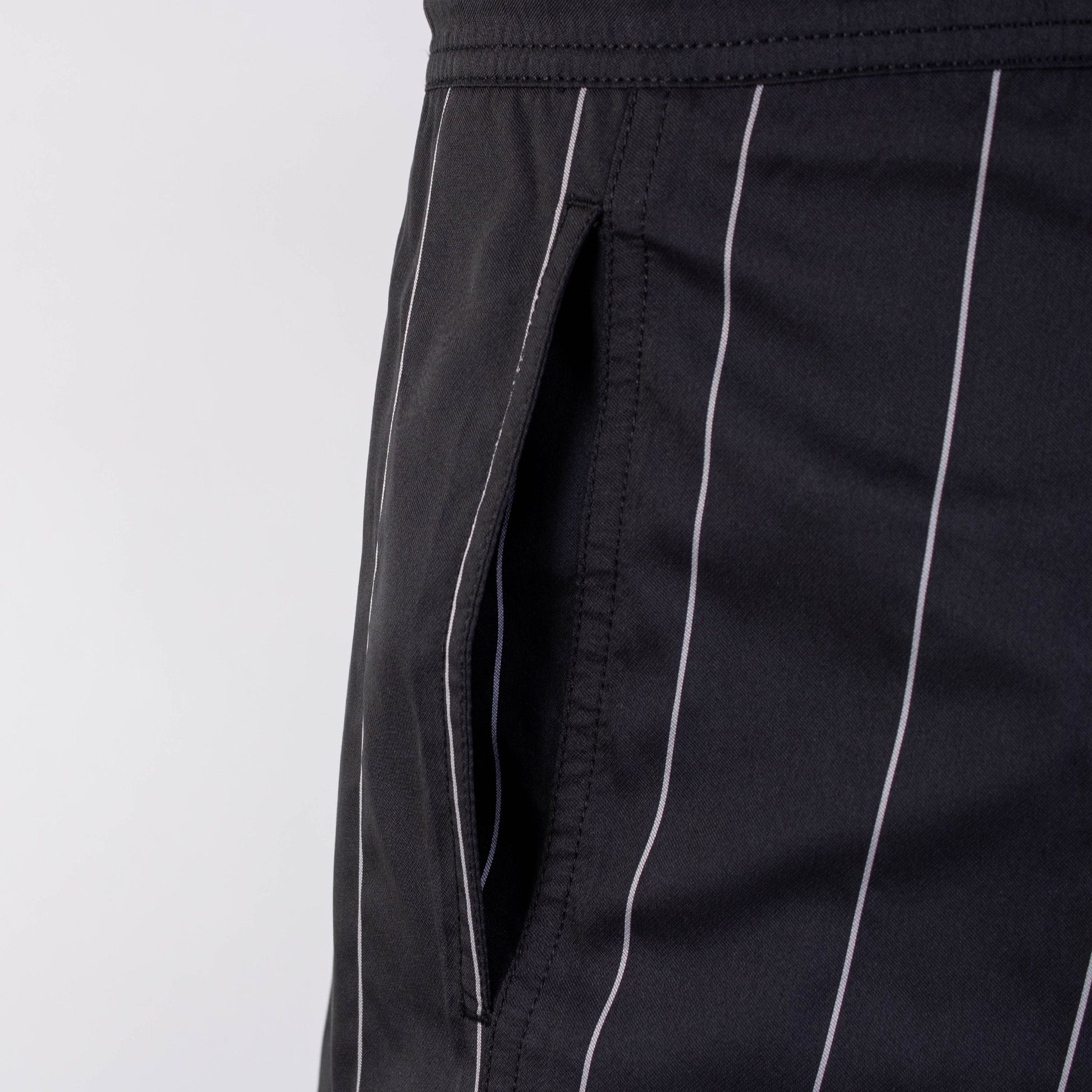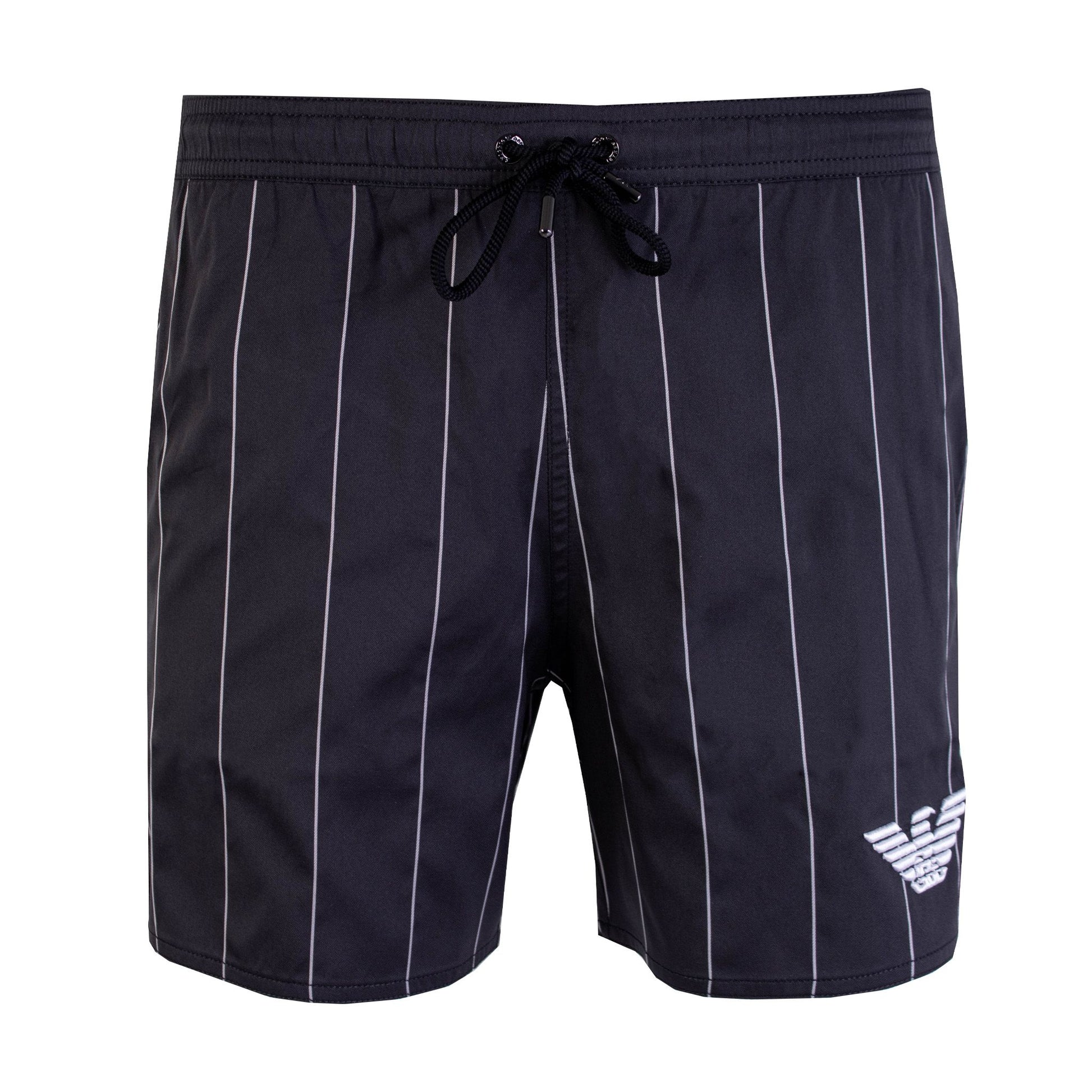 Make a stylish splash with these sophisticated black pinstripe swim shorts from Emporio Armani. Perfect for poolside lounging or beach escapades, these shorts boast a sleek design with an embroidered contrasting logo that adds an exclusive touch. With an elasticated waist and adjustable drawstring, they offer comfort and a personalized fit. Crafted in the heart of Turkey, these swim shorts are not only fashionable but also promise premium quality.