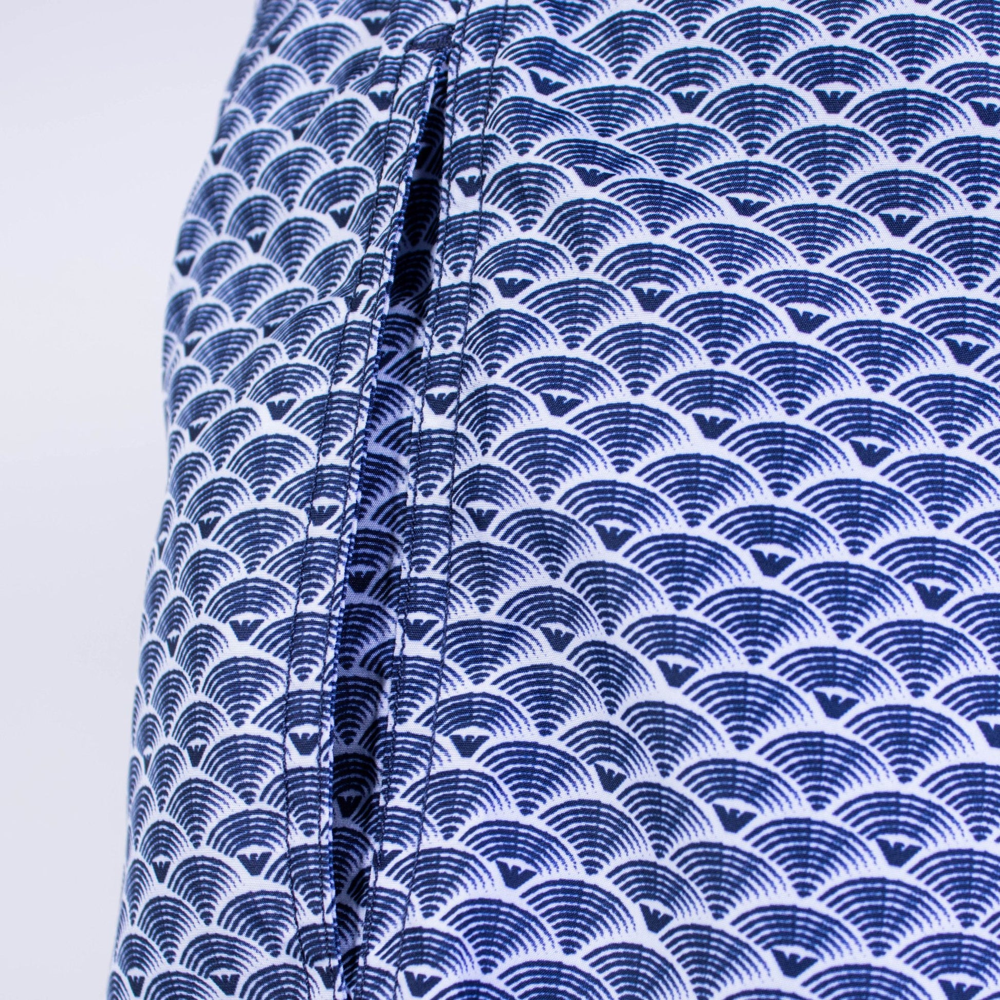 Step into summer with style in these chic Blue Designer Swim Shorts, perfect for fashion-forward gentlemen. The luxurious touch of Emporio Armani and expert tailoring ensures a dapper poolside presence. Featuring a comfortable elastic waistband, convenient adjustable drawstring, and functional side pockets, these shorts are both practical and trendy. The iconic logo embroidery adds a subtle hint of prestige to your swimwear collection.