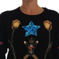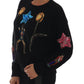 Indulge in the magic of this Dolce & Gabbana Enchanted Elegance Cashmere Sweater. A fairy tale comes to life with luxurious black cashmere, beautifully adorned with a multicolored, crystal sequined applique that captures the imagination. This Italian masterpiece flaunts impeccable craftsmanship, designed to make a sophisticated and whimsical statement.