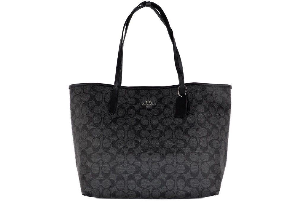 Graphite Black Signature Coated Canvas City Tote Shoulder HandBag