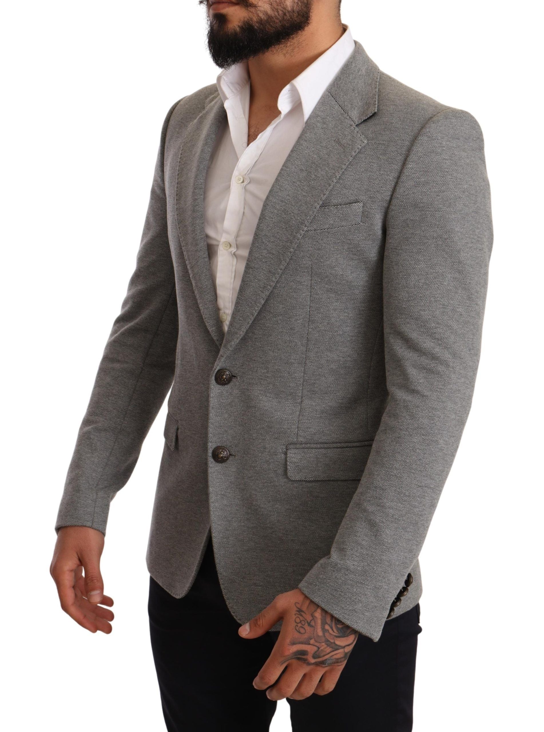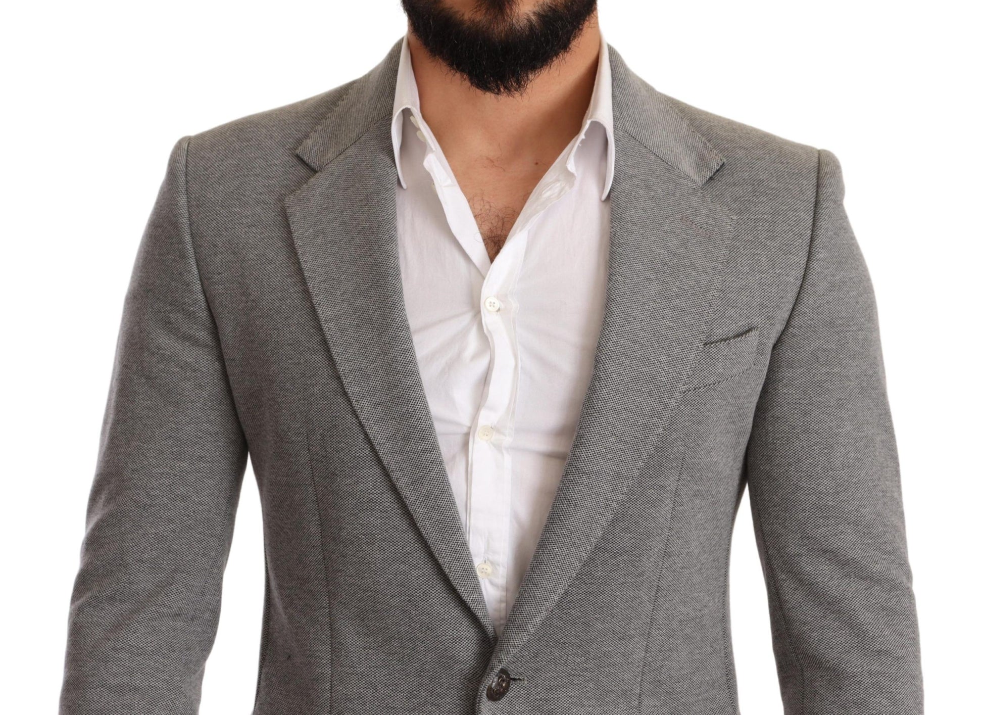 Step out in sophistication with this stunning, authentic Dolce & Gabbana blazer, fresh from their exclusive MainLine collection. With its sleek slim fit and noteworthy notch lapel style, this single-breasted gray blazer is a sartorial staple designed to impress. Meticulously crafted in Italy, it not only promises unparalleled elegance but also boasts the high craftsmanship Dolce & Gabbana is renowned for.